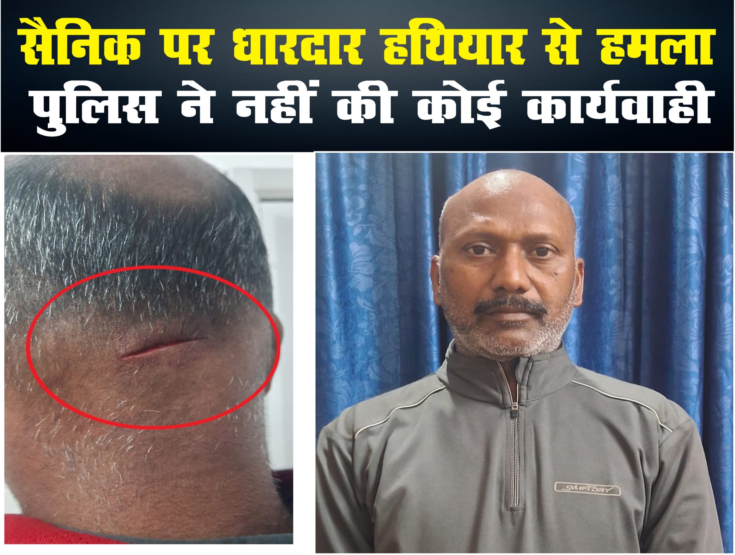 सैनिक की गर्दन पर चाकू से जानलेवा हमला, पुलिस ने नहीं की कोई कार्यवाही