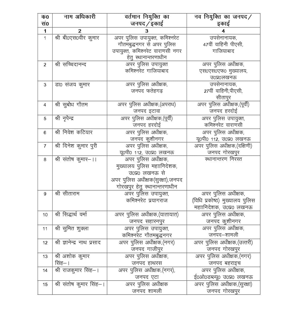 इटावा के अपर पुलिस अधीक्षक (अपराध) सुबोध गौतम को अपर पुलिस अधीक्षक हरदोई (पूर्वी),