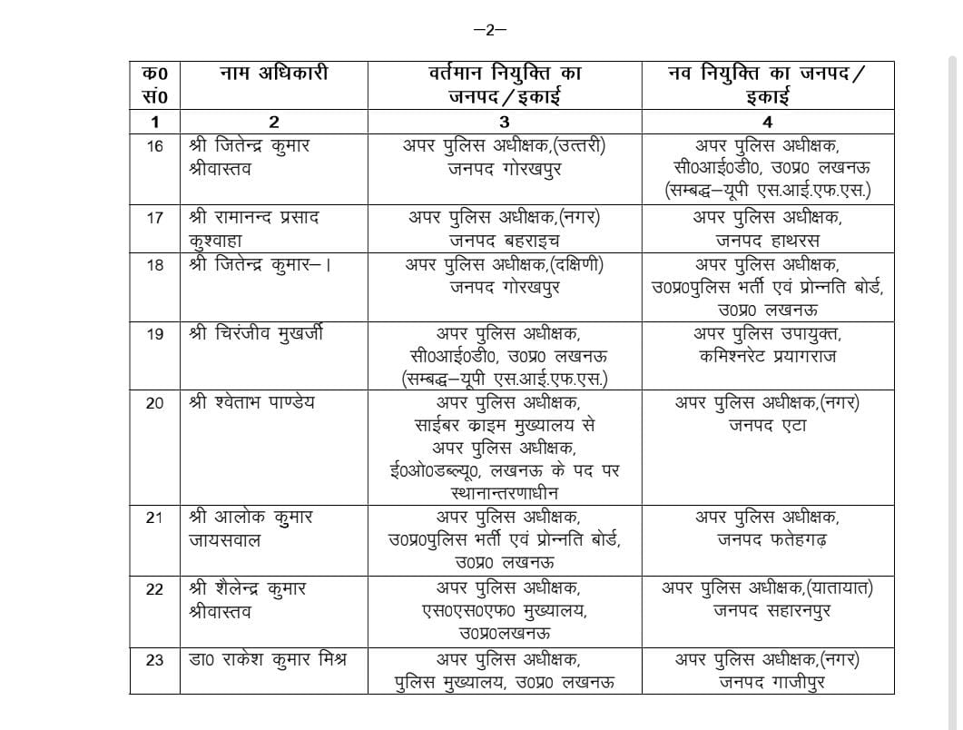 ट्रांसफर किये गये अपर पुलिस अधीक्षक