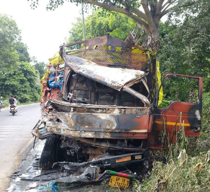 बांगरमऊ कोतवाली क्षेत्र के उन्नाव-हरदोई मार्ग पर सुबह मौरंग लदे डंपर और केमिकल ड्रम लदे डीसीएम में आमने-सामने टक्कर हो गई। जिससे दोनों वाहनों में आग लग गई। जनपद संभल निवासी डीसीएम चालक और कानपुर देहात निवासी डंपर चालक व क्लीनर जिंदा जल गए। डीसीएम के क्लीनर ने कूदकर अपनी जान बचाई। वही पुलिस दमकल की मदद से आग बुझाई गई। हादसे के कारण मार्ग तीन घंटे जाम रहा। बताया जाता है कि हादसा चालक को झपकी आने से हुआ है।