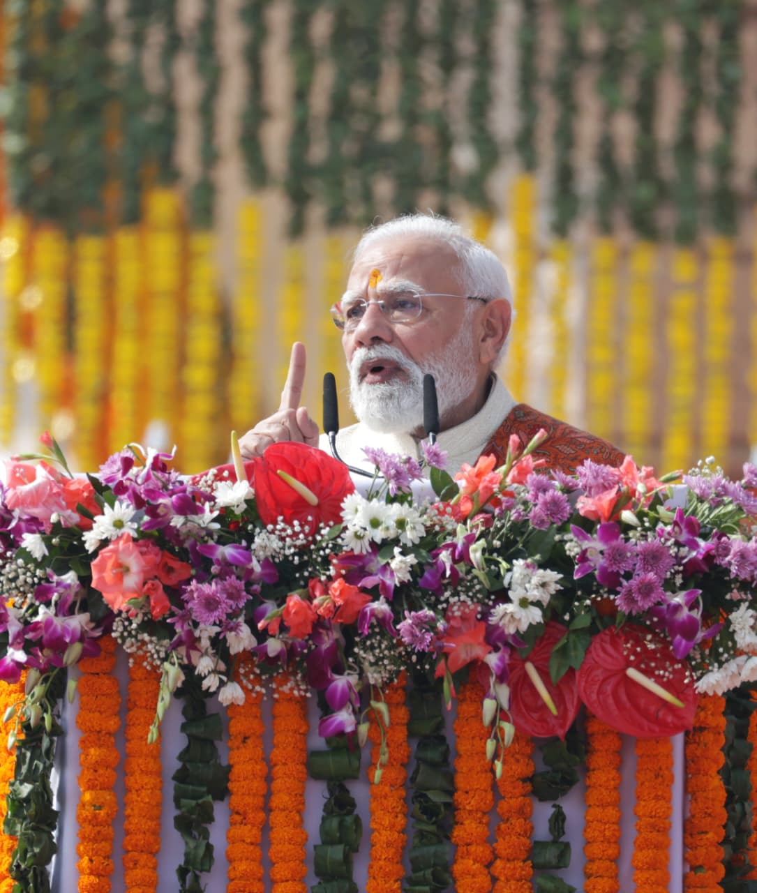 प्रधानमंत्री ने कहा कि अयोध्या वह भूमि है जहां आदर्श आचरण में बदलते हैं। यही वह नगरी है जहां श्रीराम ने अपना जीवन पथ शुरू किया था।इसी अयोध्या में संसार को बताया कि एक व्यक्ति कैसे समाज की शक्ति से,उसके संस्कारों से,पुरुषोत्तम बनता है जब श्रीराम अयोध्या से वनवास को गए तो वे युवराज राम थे, लेकिन जब लौटे तो मर्यादा पुरुषोत्तम बन करके आए।उनके मर्यादा पुरुषोत्तम बनने में महर्षि वशिष्ठ का ज्ञान,महर्षि विश्वामित्र की दीक्षा,महर्षि अगस्त्य का मार्गदर्शन,निषाद राज की मित्रता,मां शबरी की ममता, भक्त हनुमान का समर्पण इन सब की शक्ति की महत्वपूर्ण भूमिका रही है।उन्होंने कहा कि विकसित भारत बनाने के लिए भी समाज की इसी सामूहिक शक्ति की आवश्यकता है।मुझे बहुत खुशी है की राम मंदिर का दिव्य प्रांगण भारत के सामूहिक समर्थ्य की भी चेतन स्थल बन रहा है।यहां सप्त मंदिर बने हैं, यह माता शबरी का मंदिर बना है जो जनजातीय समाज के प्रेम भाव और आतिथ्य परंपरा की प्रतिमूर्ति है।यहां निषादराज का मंदिर बना है यह उस मित्रता का साक्षी है जो साधन नहीं साध्य को उसकी भावना को पूजती है। यहां एक ही स्थान पर माता अहिल्या है,महर्षि वाल्मीकि है, महर्षि वशिष्ठ है,महर्षि विश्वामित्र है,महर्षि अगस्त्य है और संत तुलसीदास हैं।रामलला के साथ-साथ इन सभी ऋषियों के दर्शन भी यहीं पर होते हैं।यहां जटायु जी और गिलहरी की मूर्ति भी हैं,जो बड़े संकल्पों की सिद्धि के लिए हर छोटे से छोटे प्रयास के महत्व को दिखाती है।मैं आज हर देशवासी से कहूंगा कि वह जब भी राम मंदिर आए तो सप्त मंदिर के दर्शन भी आवश्यक करें।यह मंदिर हमारी आस्था के साथ साथ मित्रता,कर्तव्य,और सामाजित श्रद्धाओं से मूल्यों को भी शक्ति देते हैं।हम सब जानते हैं कि हमारे राम भेद से नहीं भाव से जुड़ते हैं।उनके लिए व्यक्ति का कुल नहीं उसकी भक्ति महत्वपूर्ण है।उन्हें वंश नहीं मूल्य प्रिय है। शक्ति नहीं,सहयोग महान लगता है।हम भी उसी भावना से आगे बढ़ रहे हैं।पिछले 11 वर्षों में महिला, दलित, पिछड़े, अति पिछड़े, आदिवासी, वंचित किसान, श्रमिक, युवा हर वर्ग को विकास के केंद्र में रखा गया है। जब देश का हर व्यक्ति, हर वर्ग, हर क्षेत्र होगा, तब संकल्प की सिद्धि में सब का प्रयास लगेगा और सबसे प्रयास से ही 2047 जब देश आजादी के 100 साल मनाएगा, हमें 2047 तक विकसित भारत का निर्माण करना ही होगा। रामलला की प्राण प्रतिष्ठा के इतिहास के अवसर पर मैंने राम से राष्ट्र के संकल्प की चर्चा की, मैंने कहा था कि हमें आने वाले 1000 वर्षों के लिए भारत की नींव मजबूत करनी है। हमें याद रखना है जो सिर्फ वर्तमान का सोचते हैं वह आने वाली पीढ़ियों के साथ-साथ भावी पीढ़ियों के बारे में भी सोचना है, क्योंकि हम जब नहीं थे यह देश तब भी था, ज
