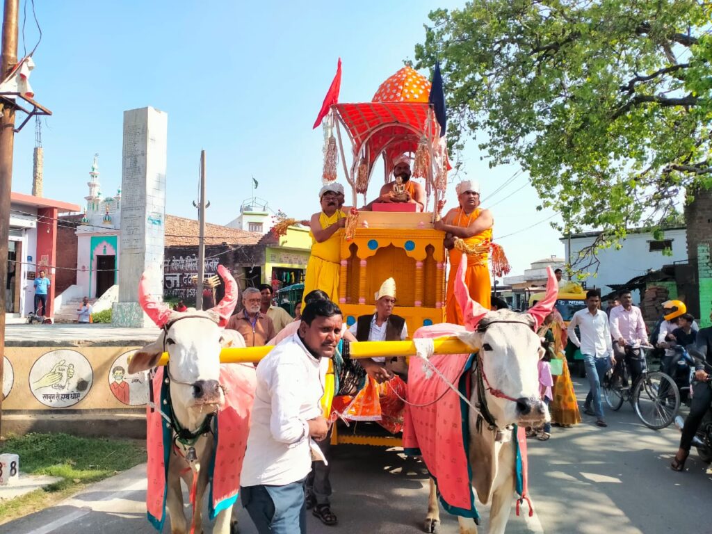 ऐतिहासिक कम्पिल नगरी में रथयात्रा के दौरान जैन धर्म की पताका.