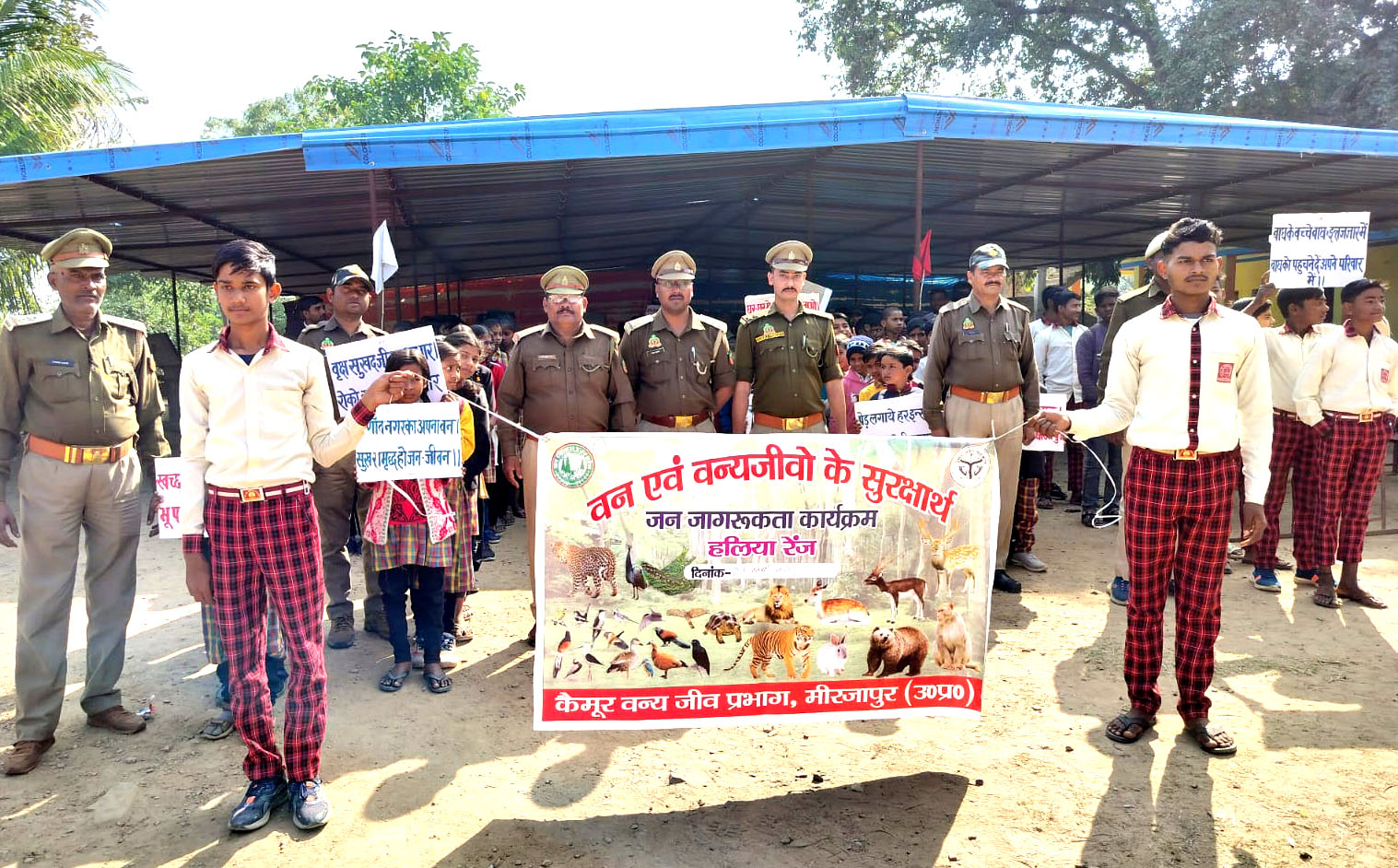 हलिया (मिर्ज़ापुर):स्थानीय वन रेंज क़े वनकर्मियों ने गुरुवार को हथेड़ा स्थित श्याल उच्चतर माध्यमिक विद्यालय क़े बच्चों क़े साथ वन एवं वन्यजीवो क़े सुरक्षार्थ कार्यक्रम क़े तहत जन जागरूकता रैली निकालकर वनो व वन्यजीवो की रक्षा क़े लिए जागरूक किया है वन व वन्यजीवो की रक्षा क़े लिए वन दरोगा सूरज पाण्डेय ने जागरूक किया कहा की गांव नगर का अपना वन सुख समवृद्ध हो जन जीवन पेड लगाओ पर्यावरण को संरक्षण करो पेड क़े अंधाधुंध्यान कटाने से पर्यावरण बिगड रहा है इसलिए पार्यावरण संरक्षण के लिए पेड लगाये और पार्यवरण का संरक्षण करे इसके बाद वनक्षेत्राधिकारी अवध नारायण मिश्र के निर्देश पर बच्चों को मिष्ठान वितरित किया गया इस संबंध में वन दरोगा सूरज पाण्डेय ने बताया की वन एवं वन्यजीवो क़े सुरक्षारथ हेतु जन जागरूकता कार्यक्रम क़े तहत रैली स्कूली बच्चों क़े साथ निकालकर जागरूक किया गया है और बच्चों को मिष्ठान वितरित किया गया है इस दौरान वन दरोगा सूरज पांडेय, श्रवण कुमार संत, चंद्र शेखर प्रजापति, वन्य जीव रक्षक राजकुमार वर्मा, अरविंद कुमार, रामदास आदिवासी आदि मौजूद रहे