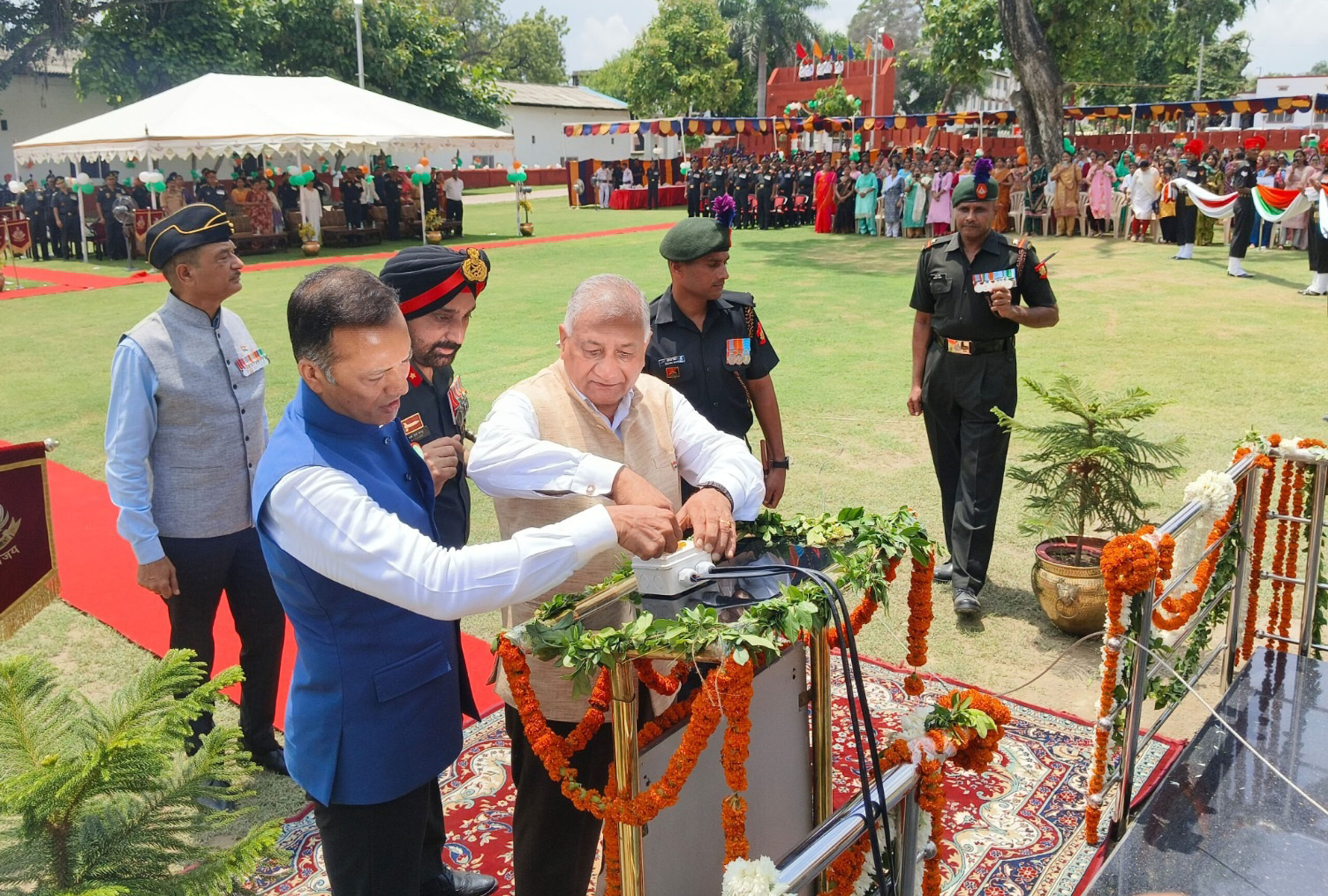 फर्रुखाबाद, समृद्धि न्यूज। 78वें स्वतंत्रता दिवस के अवसर पर राजपूत रेजीमेंट सेंटर किला घाट फतेहगढ़ पर पूर्व थल सेनाध्यक्ष जनरल वी.के. सिंह व नवीन जिन्दल ने ध्वजारोहण किया। इस दौरान देश भक्ति की बज रही धुन ने लोगों का मन मोह लिया।