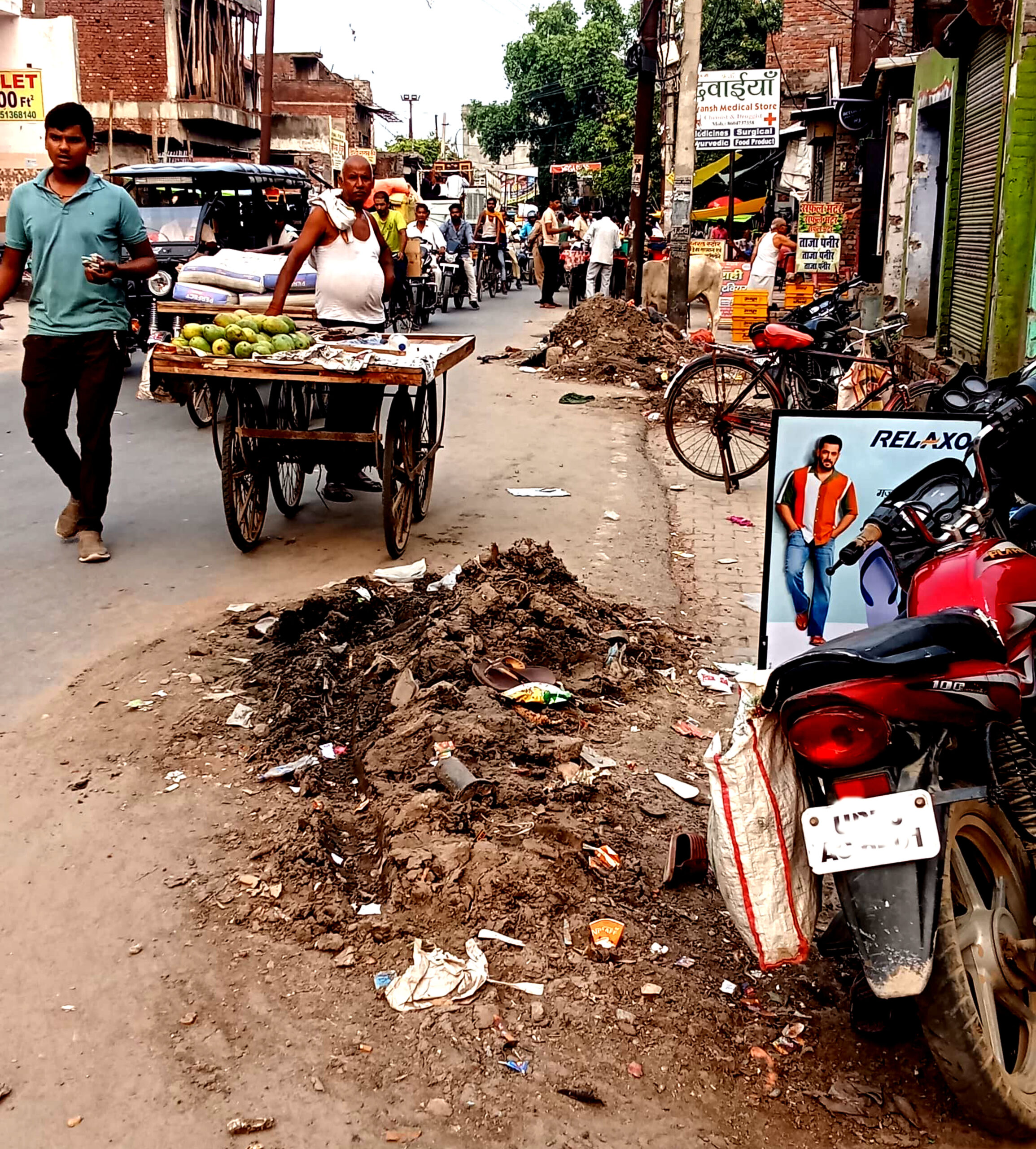 कादरीगेट नरकसा मार्ग पर लगी नाली के कूड़े के ढेर से आ रही दुर्गंध