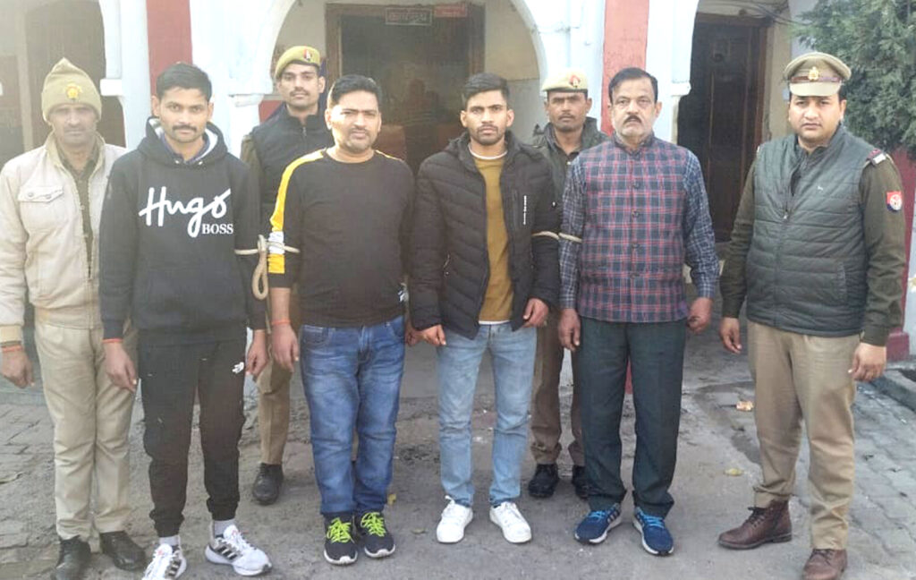 फतेहगढ़ कोतवाली पुलिस द्वारा मु0अ0सं0 31/2024 धारा-147, 149, 186, 283, 341, 332, 353, 323, 504, 506, 427 भादवि व 7 सीएलए एक्ट से सम्बन्धित अभियुक्तगण नितेश राठौर पुत्र रामप्रताप, सिन्धु उर्फ सुष्लेन्द्र पुत्र रामप्रताप, रामप्रताप सिंह पुत्र विश्वनाथ निवासीगण शिव कालोनी जय नरायन वर्मा रोड थाना कोतवाली फतेहगढ़, रमनेश पुत्र संतोष निवासी चंदरपुर थाना छिबरामऊ जनपद कन्नौज को आज पुलिस ने गिरफ्तार कर लिया, जबकि आशा देवी पत्नी रामप्रताप सिंह, आरती देवी पुत्री रामप्रताप निवासीगण शिव कालोनी जे0एन0वी0 रोड, कोतवाली फतेहगढ ़व 4-5 व्यक्ति नाम पता अज्ञात फरार चल रहे है। जिसकी विवेचना उ0नि0 मो0 सरताज द्वारा संपादित की जा रही है। बुधवार को अभियोग में धारा 149, 186, 283 भादवि की बढ़ोत्तरी कर अभियुक्तगण नितेश राठौर पुत्र रामप्रताप सिंह, सन्धु उर्फ सुष्लेन्द्र पुत्र रामप्रताप, रामप्रताप सिंह पुत्र विश्वनाथ सिंह निवासीगण शिव कालोनी जे0एन0वी0 रोड कोतवाली फतेहगढ़, रमनेश पुत्र संतोष निवासी चंदरपुर थाना छिबरामऊ जनपद कन्नौज को गिरफ्तार कर लिया। अभियुक्त नितेश पर दो मुकदमा, अभियुक्त सिन्धु उर्फ सुष्लेंद्र पर दो मुकदमा, अभियुक्त रामप्रताप पर दो मुकदमा, अभियुक्त रमनेश पर दो मुकदमे दर्ज हैं। अभियुक्तों की गिरफ्तारी के दौरान प्र0नि0 हरिश्याम सिंह कोतवाली फतेहगढ़ के अलावा उ0नि0 मो0 सरताज, का0 आर्या चौधरी, का0 शशिकान्त पाण्डेय आदि मौजूद रहे।