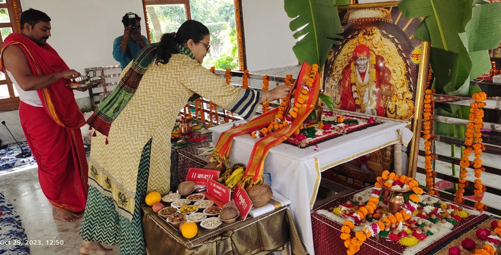 फर्रुखाबाद/छिबरामऊ, समृद्धि न्यूज। अश्विन कृष्णपक्ष प्रतिपदा रविवार को सांई मीर ग्रुप ऑफ इंस्टीट्यूशन शिर्डी धाम के प्रांगण स्थित सांई मीर ध्यान मंदिर में चतुर्थ स्थापना दिवस समारोह का आयोजन किया गया। आयोजन के पहले दिन चेयरमैन डॉ0 जितेंद्र सिंह यादव के सानिध्य में डायरेक्टर डॉ0 अनीता रंजन के द्वारा प्रथम दिवस पूजन शिर्डी से आये पुरोहित चंद्रशेखर कुलकर्णी एवं योगेश गुरुजी, वैभव गुरुजी द्वारा वेद मंत्रों की ध्वनि के साथ सम्पन्न कराया गया। आरती के बाद सांई बाबा से इंस्टीट्यूट के कर्मचारियों, छात्रों द्वारा समस्त विश्व के कल्याण की कामना की गयी। इस आयोजन में सांई मीर परिवार के सभी सदस्यों ने उपस्थित होकर बाबा का आशीर्वाद लिया।——————–