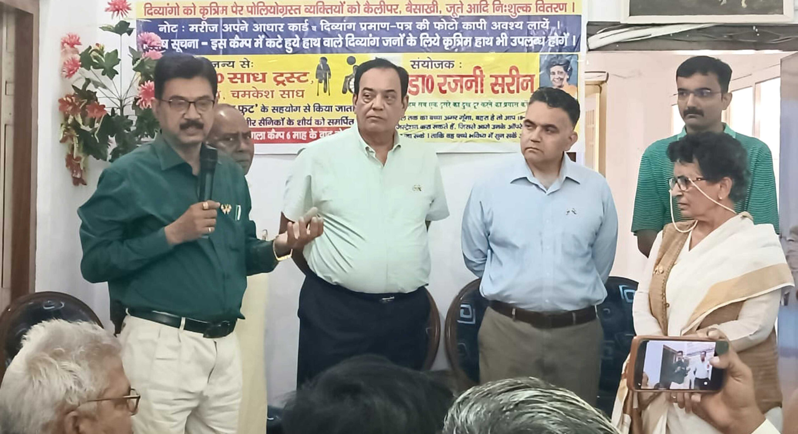 वार्ता में डॉ0 रजनी सरीन ने बताया कि एसएन साध ट्रस्ट द्वारा 18 सितंबर से 20 सितंबर तक नि:शुल्क दिव्यांग सहायता शिविर सेवा केंद्र एनकेपी डिग्री कॉलेज के सामने सेवा केन्द पर आयोजित किया जाएगा। जिसमें डॉ0 सुबोध वर्मा हड्डी रोग विशेषज्ञ, डॉ0 शिखर सक्सेना कान, नाक, गला रोग विशेषज्ञ अपनी सेवाएं देंगे। दिव्यांगों के लिए जयपुर फुट के सहयोग से दिव्यांगों को कृत्रिम पैर, पोलियो ग्रस्त व्यक्तियों को कैलीपर, बैसाखी आदि नि:शुल्क उपलब्ध कराई जाएगी। उन्होंने बताया कि एसएन साध ट्रस्ट द्वारा राकेश एवं चमकेश साध जो कार्य कर रहे हैं वह मानव की सच्ची सेवा है।