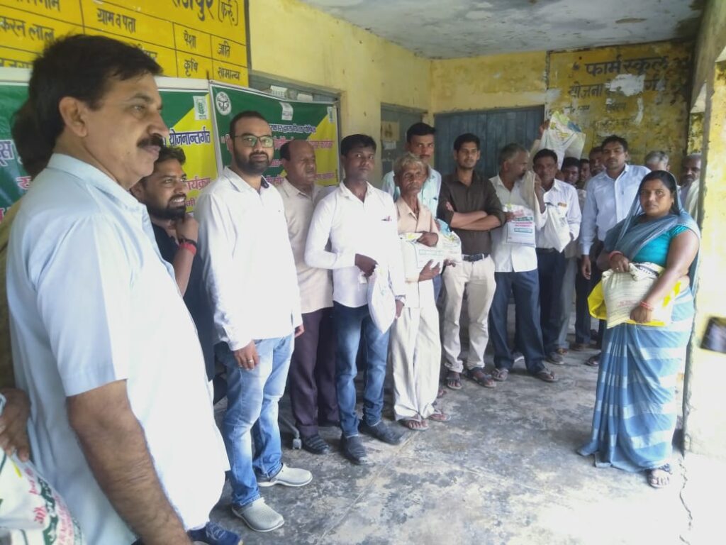 राजेपुर, समृद्धि न्यूज। राजकीय बीज भंडार राजेपुर में राष्ट्रीय खाद्य सुरक्षा योजना के अंतर्गत किसानों को खरीफ के बीज का नि:शुल्क वितरण किया गया। जानकारी के अनुसार विकास खंड राजेपुर में राजकीय बीज भंडार में ब्लाक प्रमुख पल्लव सोमवंशी, भाजपा महामंत्री विवेक सिंह राठौर की उपस्थिति मे सरकार द्वारा चलाई गई राष्ट्रीय खाद्य सुरक्षा योजना के अंतर्गत राजकीय बीज भंडार राजेपुर में अरहर, बाजरा, ज्वार के बीज राजकीय बीज भंडार राजेपुर के प्रभारी फूलचंद पाल द्वारा कृषक मनोज निवासी गांव चदोखा, सतीश कुमार निवासी गांव कमालुद्दीनपुर, भगवान दयाल निवासी डबरी, रजनीश निवासी भरका, सियाराम निवासी बहादुरपुर, दाताराम निवासी कड़क्का, जगरूप निवासी बंंिमयारी, मेवाराम निवासी भरका सहित लगभग आधा सैकड़ा किसानों को नि:शुल्क बीज का वितरण किया गया। इस मौके पर राष्ट्रीय खाद्य सुरक्षा के प्रभारी डॉ0 सुनील राजपूत, एडीओपीपी अनिल कटियार, रामराज सहित राजकीय बीज भंडार के समस्त कर्मचारी व क्षेत्र के सैकड़ों किसान मौजूद रहे।