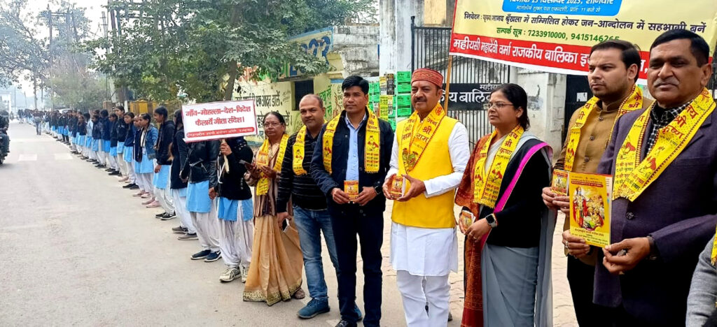 मानव श्रंखला मनाकर धूमधाम से मनायी गई गीता जयंती