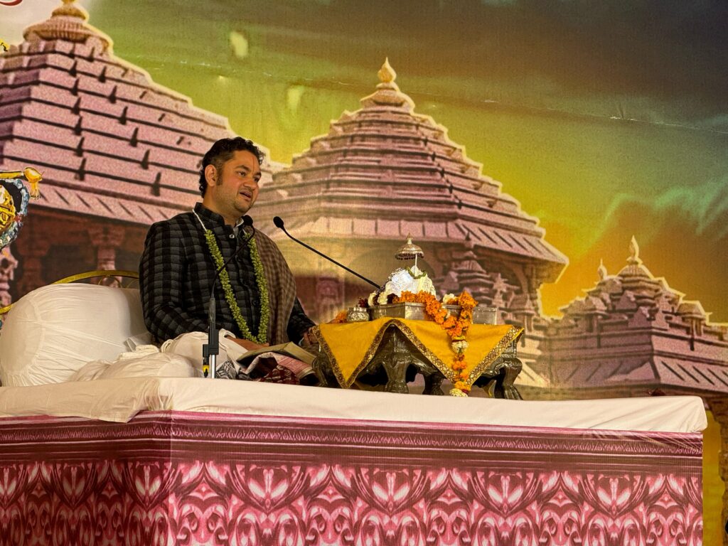 समृद्धि न्यूज़ अयोध्या। रामनगरी की प्रसिद्ध पीठ उदासीन संगत ऋषि आश्रम परिसर में चल रही श्रीमद् भागवत कथा के पांचवें दिन शहर,जिला,गैर जिला और गैर प्रांतों से बड़ी तादाद में श्रद्धालु जन पहुंचे।इन श्रद्धालुजनों को श्रीमद् भागवत कथा का रसपान कराते हुए प्रख्यात भागवत कथा वाचक कथा व्यास पुंडरीक गोस्वामी महराज ने कथा रसपान कर रहे श्रद्धालुओं को मंत्र का अर्थ बताया। कथा व्यास पुंडरीक ने बताया कि मंत्र का अर्थ आपके मन में मर्यादा, नैतिकता,मूल्य,सिद्धांत, दया, प्रेम, क्षमाशीलता और परोपकारिता आदि का प्रकट हो जाना है। मंत्र के इस अर्थ का विस्तृत व्याख्यान करने के बाद कथा व्यास पुंडरीक गोस्वामी महाराज ने बताया कि विचार, प्रेम, विश्वास और दया हमें धार्मिक एकता के सूत्र में पिरोकर रखते है।परमेश्वर की लीलायें अनन्त हैं और वे कण कण में समाये हैं। उन्होंने बताया कि परमात्मा साधन साध्य नहीं, कृपा साध्य हैं।अपने मंत्र मे विश्वास और गुरु मे स्वीकृति से ही परमात्मा का प्राकट्य होता है। द्वितीय सत्र की श्रीमद् भागवत कथा के बाद सायं क़ालीन सत्र में भारत के सुप्रसिद्ध शास्त्रीय संगीतज्ञ राजन मिश्रा एवं स्वरंश मिश्रा द्वारा भजन संध्या का आयोजन किया गया।इस दौरान बड़ी संख्या में श्रद्धालुओं के साथ रामनगरी की प्रसिद्ध पीठों के संत,महंत,धर्माचार्ययों और सुदूर क्षेत्रों से आए हुए संभ्रांत भक्तजन मौजूद रहे।