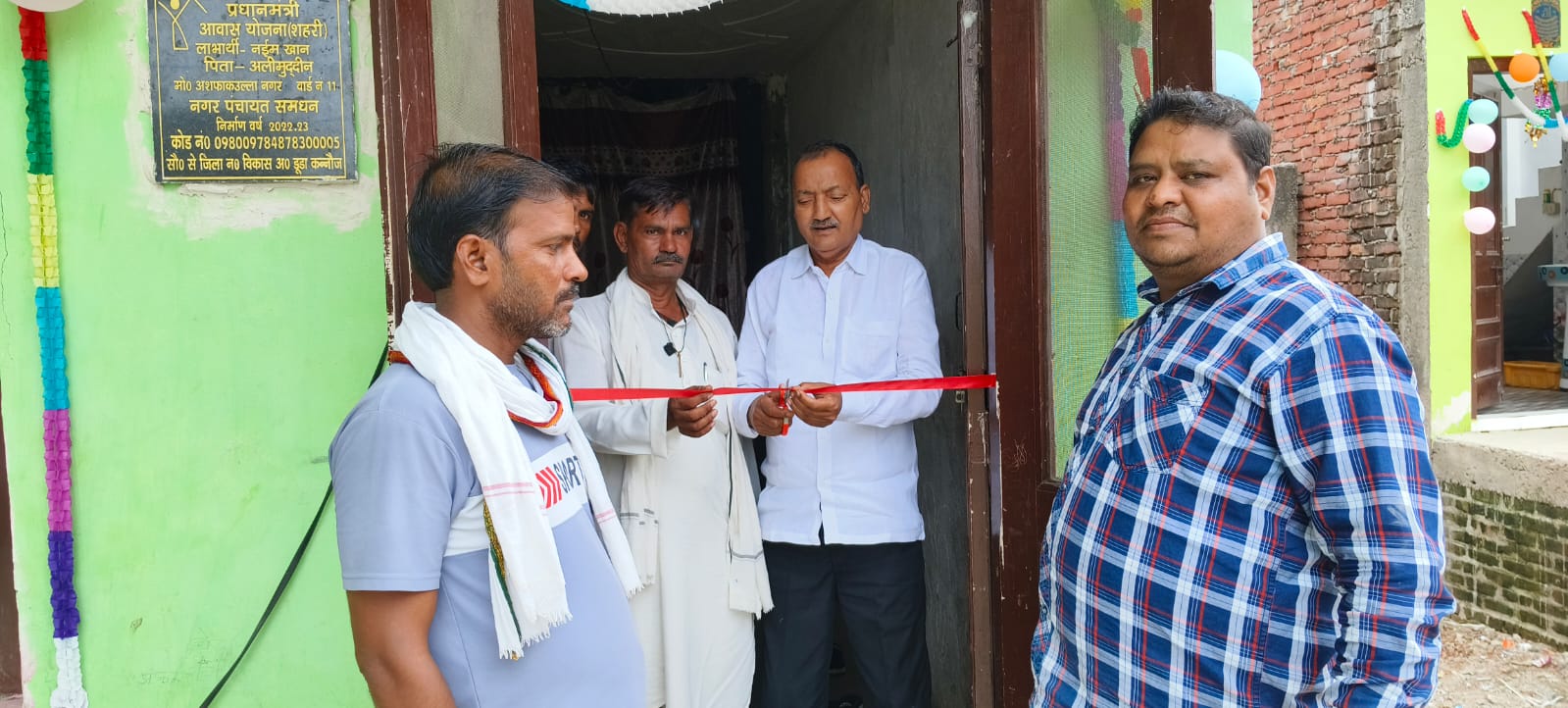समधन, समृद्धि न्यूज़। प्रधानमंत्री के जन्मदिन पर नगर पंचायत के अध्यक्ष प्रतिनिधि व कर्मचारियों ने धूमधाम व सादगी पूर्ण ढंग से मनाया गया, समधन नगर पंचायत कार्यालय परिसर में मंगलवार को प्रधानमंत्री नरेन्द्र मोदी के जन्मदिन पर पहले उनका लाइव प्रसारण दिखाया गया इसके बाद अध्यक्ष प्रतिनिधि अखलाक हुसैन सिद्दीकी ने प्रधानमंत्री आवास योजना शहरी लाभार्थी नगर के मोहल्ला गोरी नवादा निवासी नईम पुत्र अलीमुद्दीन व इसी मोहल्ले के निवासी महिला तारा देवी पत्नी फैयाज के नवनिर्मित बने आवासों पर पहुंचकर फीता काट कर गृह प्रवेश कराया गया।
