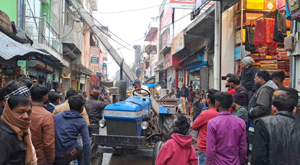 बिजली का पोल टूटा, लोग बाल-बाल बचे, पुलिस मौके पर पहुंची