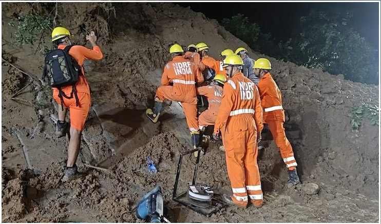 #WATCH | Mandi, Himachal Pradesh | Sundernagar MLA Rakesh Jamwal says, "A major landslide occurred in Sundernagar around 6 pm, in which two houses have been buried in the debris. There were five people in the two houses. Three bodies have been pulled out so far. Two people are… https://t.co/v1nGos2spn pic.twitter.com/jyn2WLNK8W