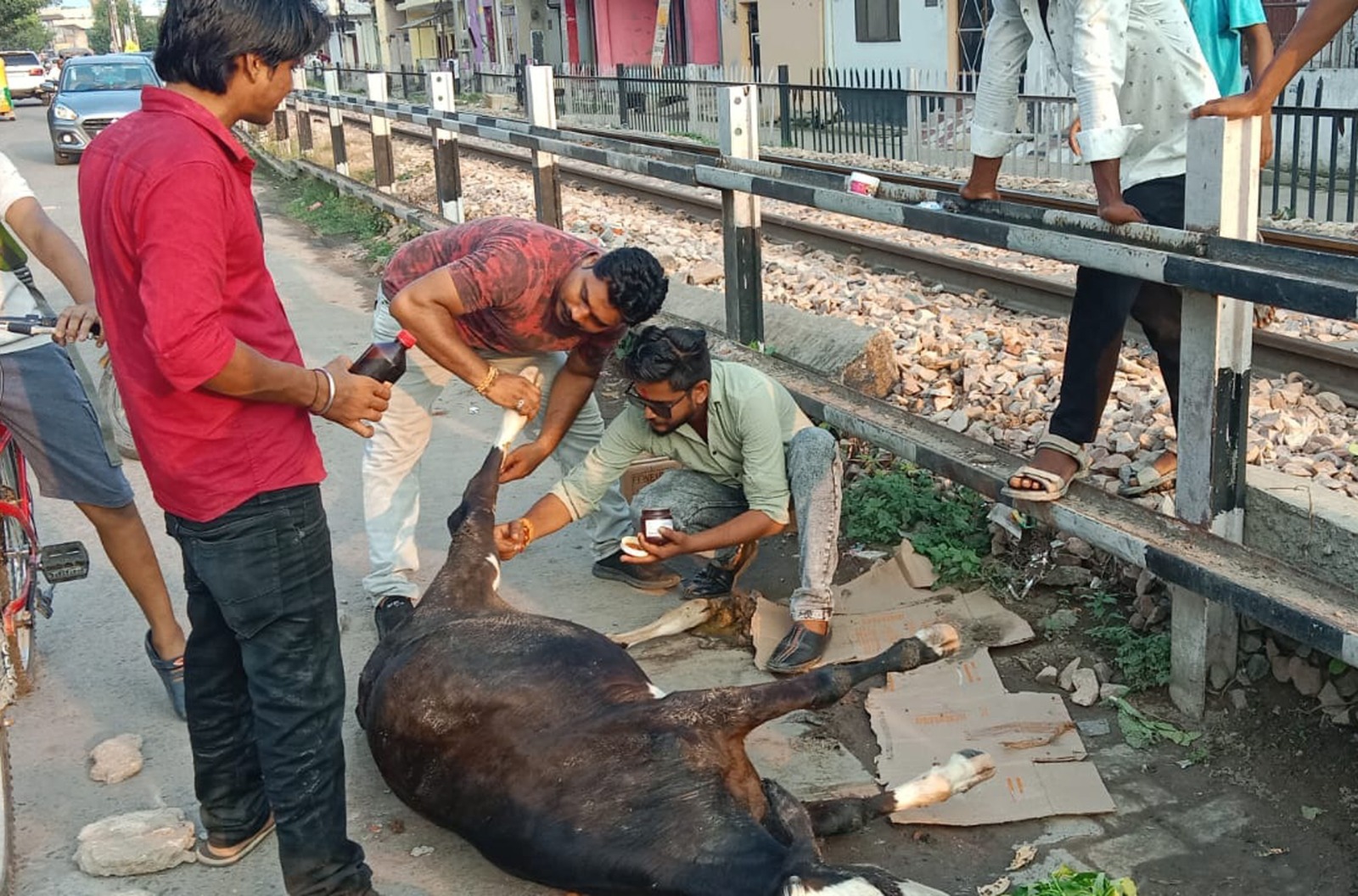 फर्रुखाबाद, समृद्धि न्यूज। हिन्दू महासभा गौरक्षा प्रकोष्ठ के जिलाध्यक्ष सचिन शर्मा ने अपने साथियों के साथ तड़प रहे बछड़े का उपचार किया। पिछले दो दिनों से फतेहगढ़ मुख्य मार्ग भीमसेन मार्केट के निकट सड़क पर पड़े बछड़े को तड़पता देखकर हिन्दू महासभा के युवा प्रदेश अध्यक्ष विमलेश मिश्रा ने अपनी टीम के सचिन शर्मा को फोन किया और अपने साथियों के साथ पहुंचकर बछड़े का उपचार किया। दो दिनों से नगर पालिका की उदासीनता का शिकार बना गाय का बछड़ा सड़क पर ही तड़पता रहा। कई फोन करने के बाद भी जिम्मेदारों ने सुधि नहीं ली।