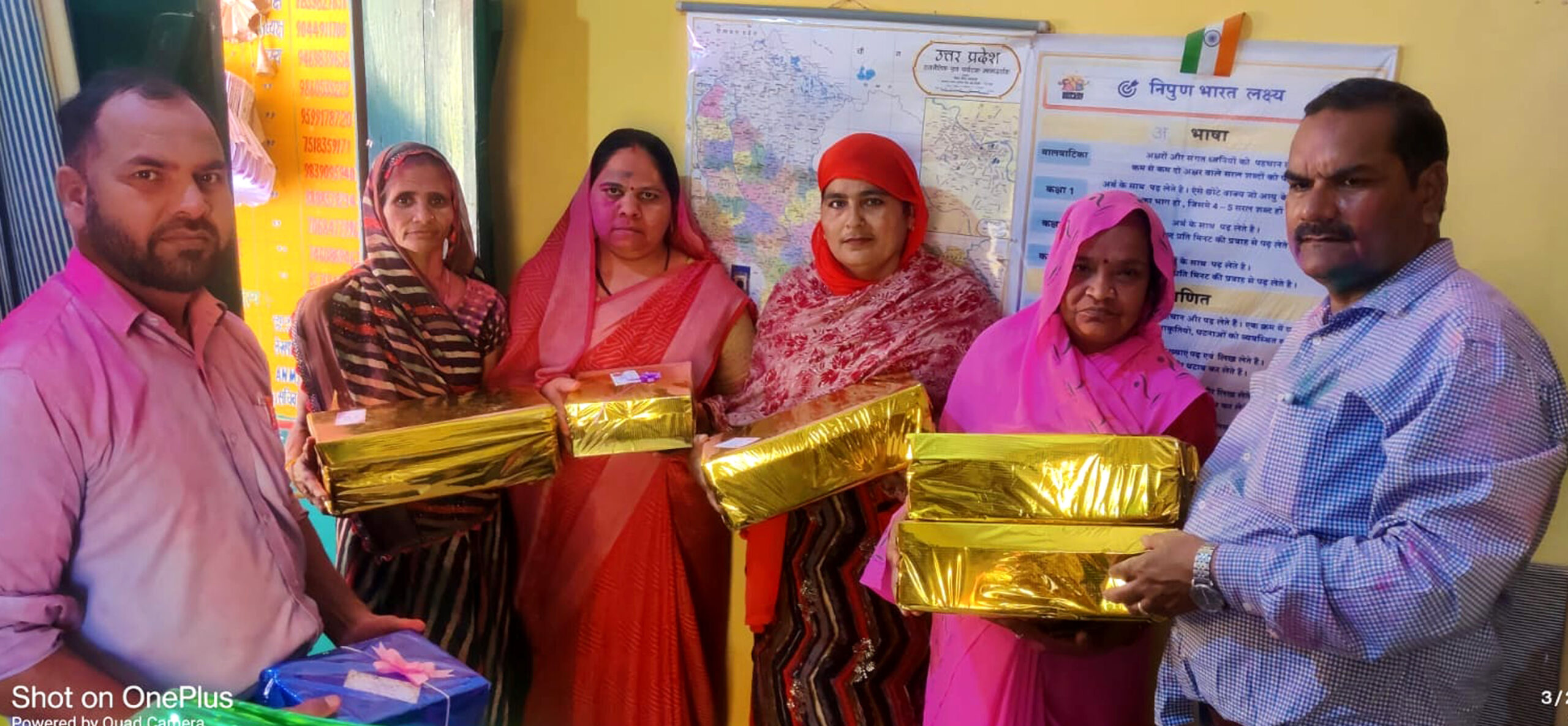 प्रा0वि0 अलीगढ़ में एक दूसरे को गुलाल लगाकर मनाई गयी होली