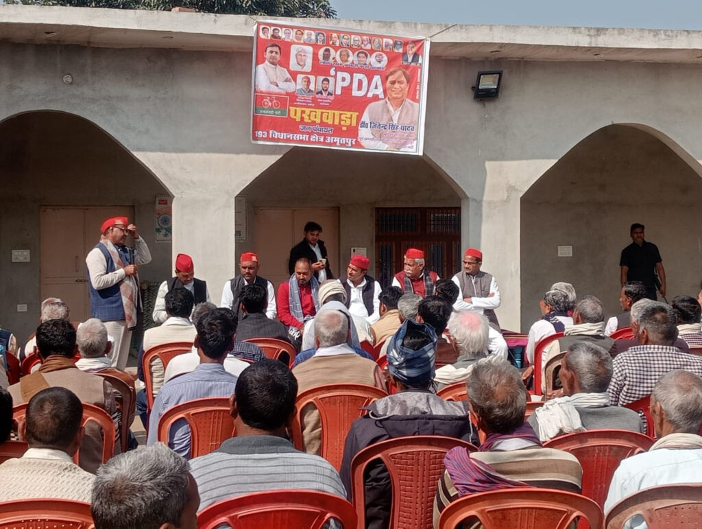 पीडीए पखवाड़ा जन पंचायत के तहत समाजवादी पार्टी के प्रदेश सचिव व अमृतपुर विधानसभा के पूर्व प्रत्याशी डॉ0 जितेंद्र सिंह यादव के मार्गदर्शन में गांव-गांव, घर-घर जाकर कार्यकर्ता लोगों को सपा की उपलब्धियों का पत्रक वितरित कर रहे हैं। जिससे लोग जान सकें कि सपा सरकार में कौन-कौन से विकास कार्य हुए और कौन-कौन सी योजनायें लागू की गयी थीं और उनका भविष्य किसमें सुरक्षित है, लेकिन इस सरकार में नाम बदलने के अलावा के अलावा कुछ भी नहीं किया। विधानसभा अमृतपुर के क्षेत्र भरखा, उजरा में लोकसभा प्रत्याशी डॉ0 नबल किशोर शाक्य ने सभायें कर जनता से समर्थन मांगा। उन्होंने कहा कि मैं नेता नहीं बेटा बनकर आया हूँ।