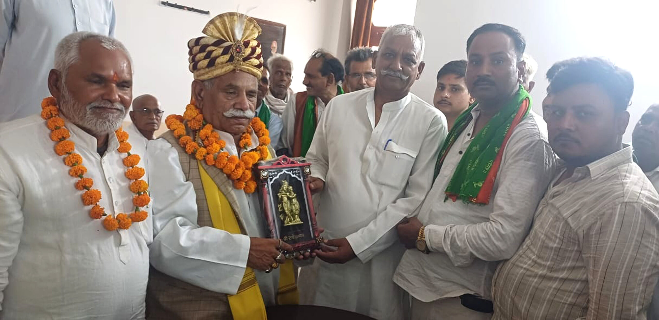 किसान नेताओं ने राष्ट्रीय अध्यक्ष का पगड़ी पहनाकर किया स्वागत