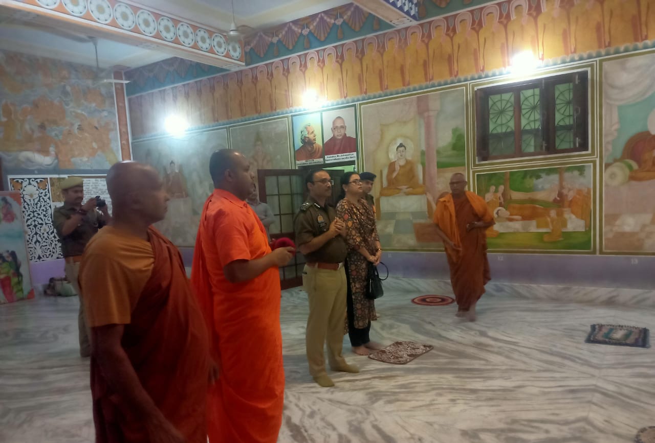 आईजी ने भिक्षु डॉ.धम्मपाल महा थैरो से भगवान बुद्ध के बारे में जानकारी ली। इसके बाद आईजी प्रशांत कुमार द रॉयल रेजिडेंस होटल पहुंचे।