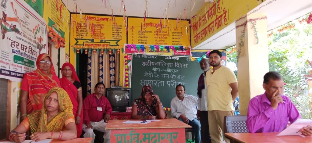 फर्रुखाबाद, समृद्धि न्यूज। विकास खण्ड कायमगंज के प्राथमिक विद्यालय मदारपुर में साक्षरता परीक्षा में निरक्षरों ने भाग लिया। साथ ही राष्ट्रीय बालिका दिवस मीना जन्मोत्सव के रुप में मना और प्राथमिक विद्यालय मोदी के मन की बात कार्यक्रम को सुना गया।