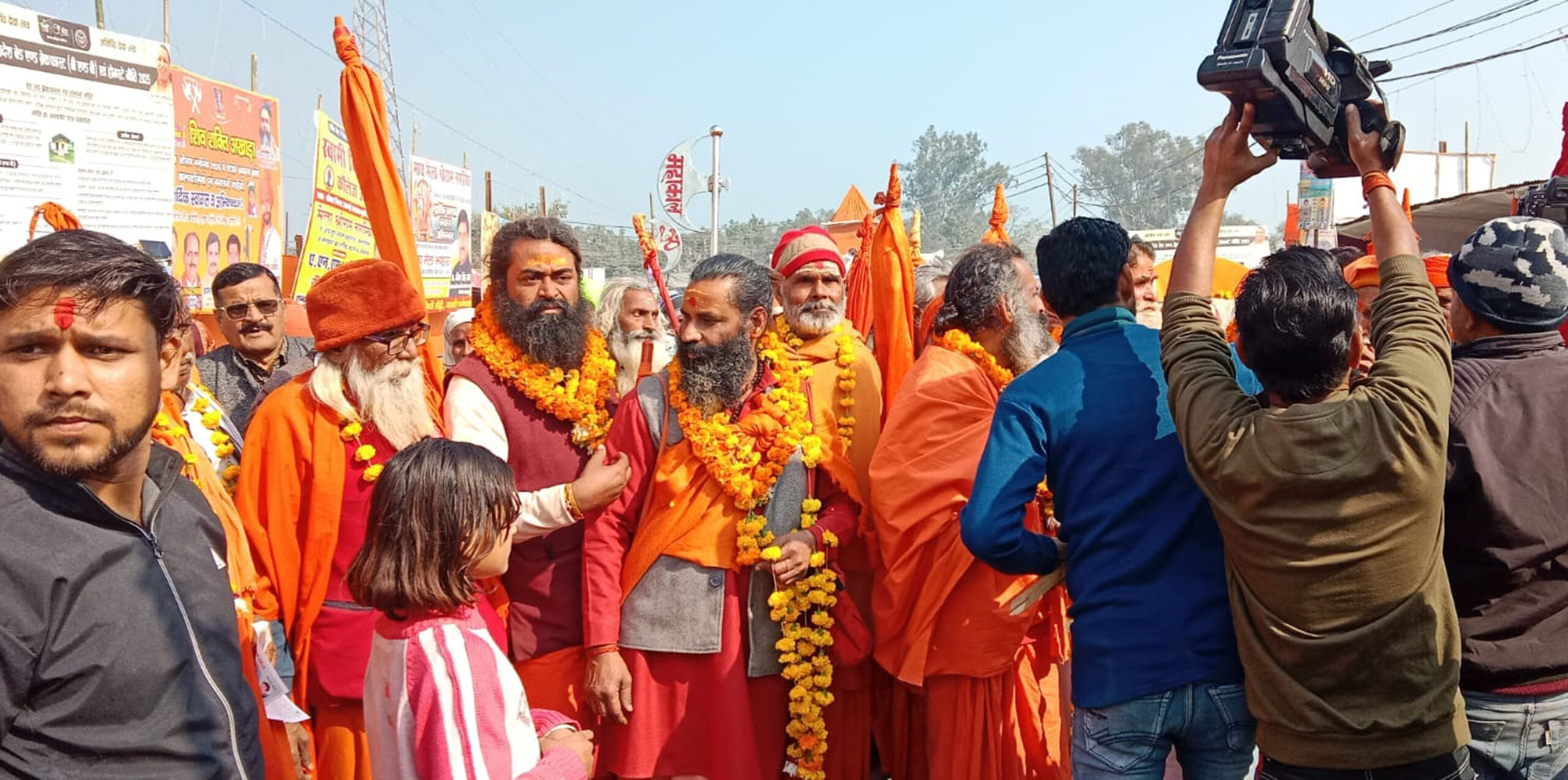 अपर जिलाधिकारी व मेला व्यवस्थापक ने संतों का माला पहनाकर किया स्वागत