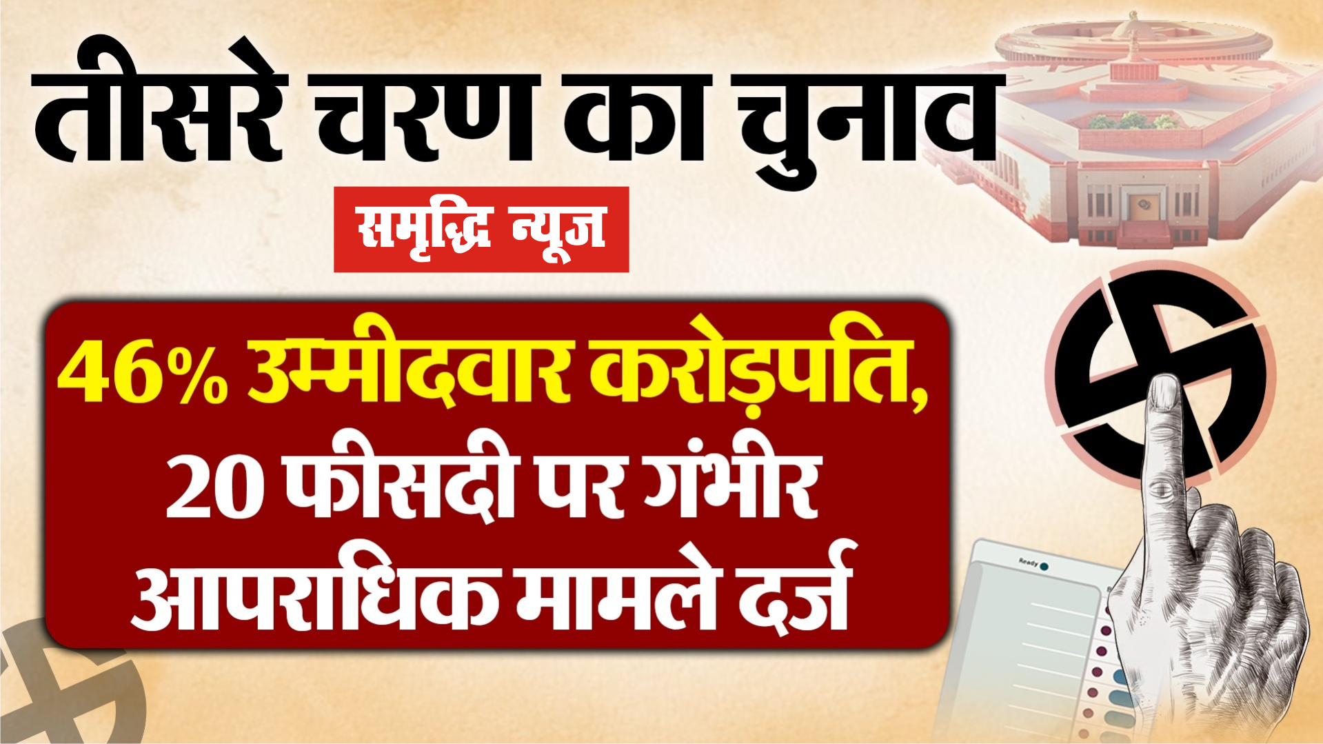 तीसरे चरण के चुनाव में 46% उम्मीदवार करोड़पति, 20 फीसदी पर गंभीर आपराधिक मामले दर्ज
