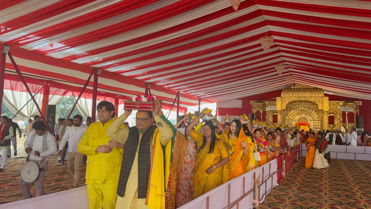 सैफई: हैवरा कोठी में महाशिवरात्रि के पावन पर्व पर रविवार को श्रीमद्भागवत कथा का शुभारंभ भव्य कलश यात्रा के साथ हुआ। कथा पंडाल से निकली यात्रा में 101 कन्याओं ने पीले वस्त्र धारण कर सिर पर कलश रखे और श्रद्धा के साथ धर्मध्वजा संभाली। पूरे मार्ग में भक्ति गीतों और हर-हर महादेव के जयघोष से वातावरण भक्तिमय बना रहा।