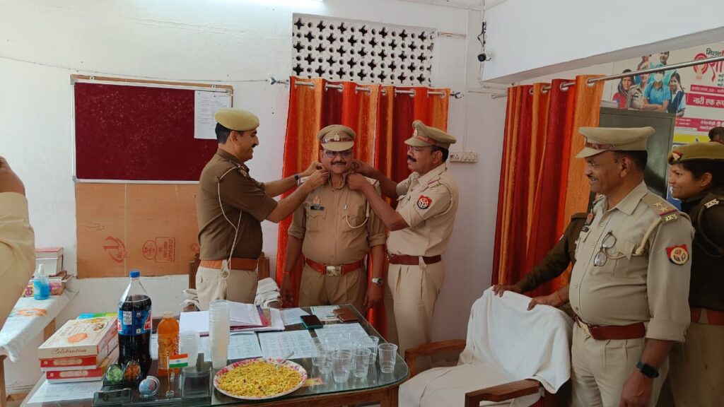 मेरापुर समृद्धि न्यूज। थाने में तैनात हेड मुहर्रिर दिनेश कुमार का प्रमोशन उपनिरीक्षक पद पर हो गया है। इसी क्रम में रविवार की सुबह मेरापुर थाना प्रभारी दिग्विजय सिंह तथा वरिष्ठ उप निरीक्षक रामसेवक वर्मा ने दिनेश कुमार यादव को वर्दी व कैप पहनाकर वर्दी पर स्टार लगाए। थाना प्रभारी ने मिठाई खिलाकर उपनिरीक्षक दिनेश कुमार यादव का स्वागत किया।