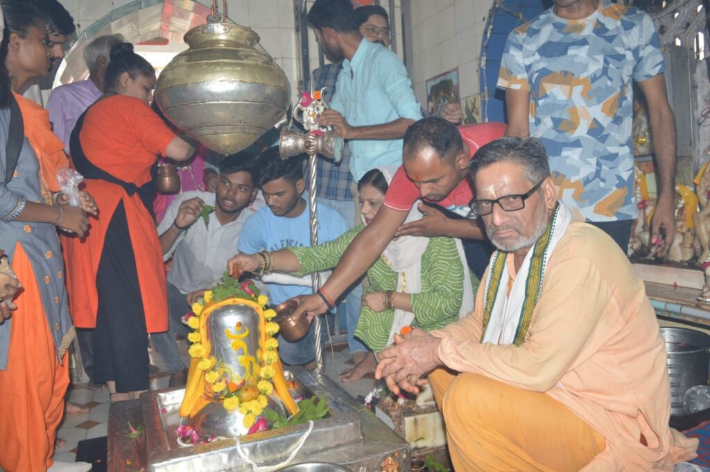 ऐतिहासिक मंदिर पंडाबाग में पूजा अर्चना करने के लिए भक्तों को लाइन में लगना पड़ा, पुलिस फोर्स रहा तैनात…..