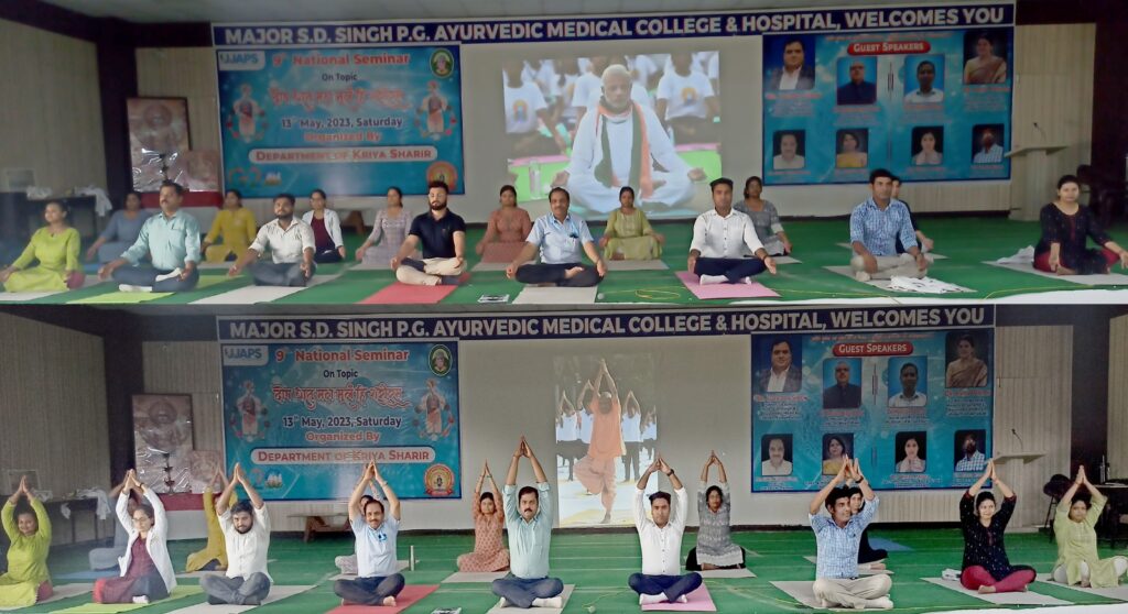 फर्रुखाबाद, समृद्धि न्यूज। विश्व योग दिवस से पूर्व मनाये जा रहे योग सप्ताह के पांचवें दिन मेजर एसडी सिंह पीजी आयुर्वेदिक मेडिकल कॉलेज एवं हॉस्पिटल के ऑडीटोरियम में प्राचार्य के निर्देशन में स्वस्थवृत्त एवं योग विभाग के प्रवक्ता डॉ0 अरुण कुमार पाण्डेय ने योग अभ्यास कराया एवं छात्र-छात्राओं को नियमित योग करने के लिए प्रेरित किया।