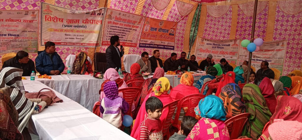 नवाबगंज विकास खंड क्षेत्र के ग्राम पंचायत शिवरई मठ मैं चल रही विकसित भारत संकल्प यात्रा में पहुंचकर जेडीसी (ज्वाइंट डेवलपमेंट कमिश्नर) ने डीसी एनआरएलएम तथा विकास खंड अधिकारी के साथ पहुंचकर जनता की समस्याएं सुनीं। वही सरकार की योजनाओं से भी जनता को अवगत कराया। ज्वाइंट डेवलपमेंट कमिश्नर नरेश चंद्र सविता तथा डीसी एनआरएलएम योगेंद्र पाठक, विकास खंड अधिकारी गगनदीप सिंह को साथ लेकर अधिकारियों ने ग्राम पंचायत आचरिया बाकरपुर में बने पंचायत भवन तथा अमृत बाटिका का निरीक्षण किया। जिसमें दोनों अधिकारियों ने विकास खंड अधिकारी के द्वारा कराए गए कार्यों की सराहना की। उसके बाद नवाबगंज विकास खंड कार्यालय पर लौटकर दोनों अधिकारियों ने कार्यालय का निरीक्षण किया। जिसमें उन्होंने विकास खंड अधिकारी को आवारा गोवंशों को पकड़वाने की जानकारी की। जेडीसी नरेश चंद्र सविता तथा डीसी एनआरएलएम योगेंद्र पाठक ने विकास खंड अधिकारी को निर्देशित करते हुए बताया की क्षेत्र में आवारा गोवंश को पकड़वाकर जल्द गौशालाओं में भेजने की कार्रवाई की जाए। वही सरकार द्वारा चलाई जा रही योजनाओं में प्रधानमंत्री आवास, मुख्यमंत्री आवास की भी समीक्षा की तथा जिन लोगों ने कूटरचित दस्तावेज पेश कर फर्जी तरीके से आवास लिए हैं उनके आवास निरस्त कर उनके ऊपर क्या कार्रवाई की गई इसके बारे में भी विकास खंड अधिकारी से जानकारी ली। कई ऐसे महत्वपूर्ण बिंदुओं पर बात करते हुए उन्होंने विकास खंड अधिकारी कार्यालय की रूपरेखा देखकर विकास खंड अधिकारी द्वारा बनाए गए कार्यालय की सराहना करते हुए उन्होंने पार्क तथा अन्य कार्यालय को भी देखा। इस मौके पर ज्वाइंट डेवलपमेंट कमिश्नर नरेश चंद्र सविता, डीसी एनआरएलएम योगेन्द्र पाठक, विकास खंड अधिकारी गगनदीप सिंह, ग्राम सचिव कुलदीप राजपूत, अकाउंटेंट अवनीश सक्सेना, लिपिक आलोक दीक्षित, सहायक लिपिक स्थापना सुरेश बाबू, आलोक पाठक, एपीओ गौरव दिवाकर, राहुल चंदेल, विवेक कुमार, इंदल बाबू, एडीओ समाज कल्याण प्रवीण कुमार तथा सभी ग्राम सचिव मौजूद रहे।