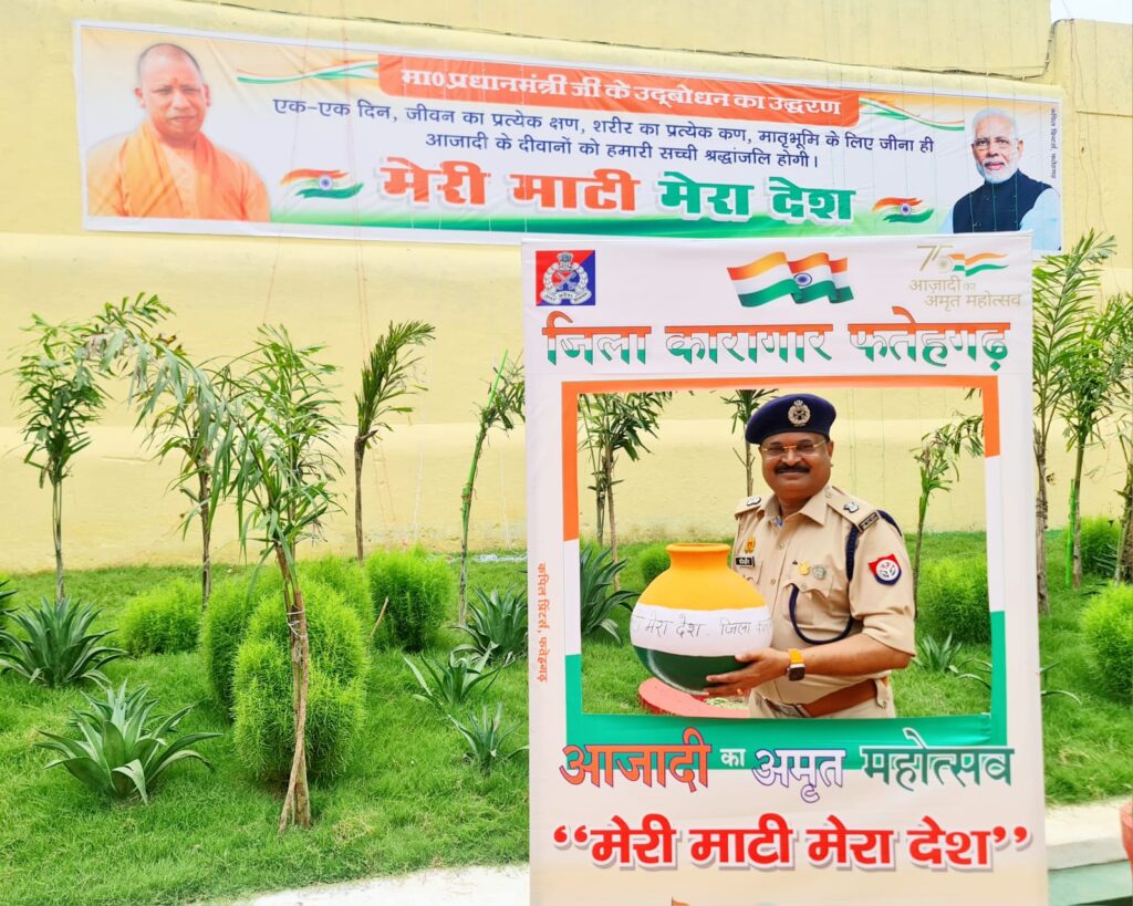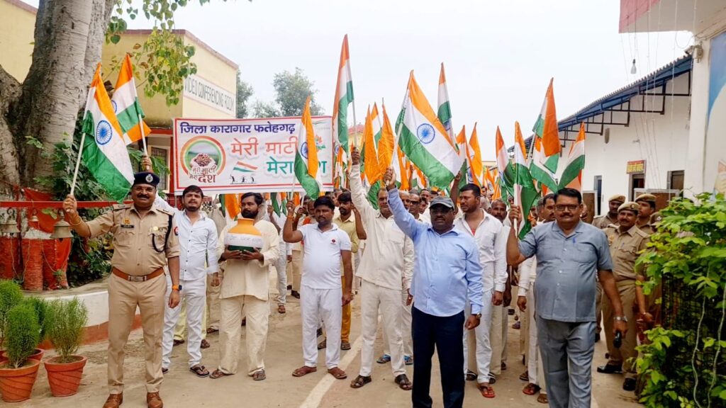 फर्रुखाबाद, समृद्धि न्यूज। जिला कारागार फतेहगढ़ आज़ादी के अमृत महोत्सव के अंतर्गत आयोजित कार्यक्रमों की श्रृंखला में मेरी माटी मेरा देश कार्यक्रम कारागार में बंदियों के बीच आयोजित किया गया। जिसमें सभी सिद्ध दोष बंदियों एवं अधिकारियों, कर्मचारियों ने पूरे जोश के साथ भाग लिया। सर्किल में बंदियों में कलश मिट्टी डालकर एवं हाथ में तिरंगा लेकर मेरी माटी मेरा देश, वंदे मातरम् एवम भारत माता की जय के उद्धघोष के साथ कलश यात्रा निकाली गई।