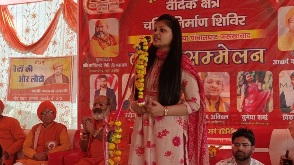 संचालन करते हुए गाजियाबाद से आये कवि स्वदेश यादव ने कहा कि धर्म साधना से ज्यादा कुछ बड़ा नहीं हो सकता है और धर्म के आगे कोई खड़ा नहीं हो सकता है। मुख्य अतिथि गाजियाबाद से आये विख्यात हिंदूवादी संत श्यति नरसिंहानंद गिरी महामंडलेश्वर जूना अखाड़ा रहे। उन्होंनें कहा कि स्वामी दयानंद सरस्वती पहले सन्यासी थे। जिन्होंने सदियों से सोई हुई हिन्दू जाती के स्वाभिमान को जगाया। उनके द्वारा स्थापित आर्य समाज की भट्टी में तप कर अनेकों बलिदानियों ने हिन्दू जाती की रक्षा के लिए अपने प्राणों की आहुतियां दीं। यदि समाज के तत्कालीन संगठनों ने आर्य समाज के शुद्धि आंदोलन का पूर्ण सहयोग किया होता तो आज देश मे एक भी विधर्मी नहीं होता।