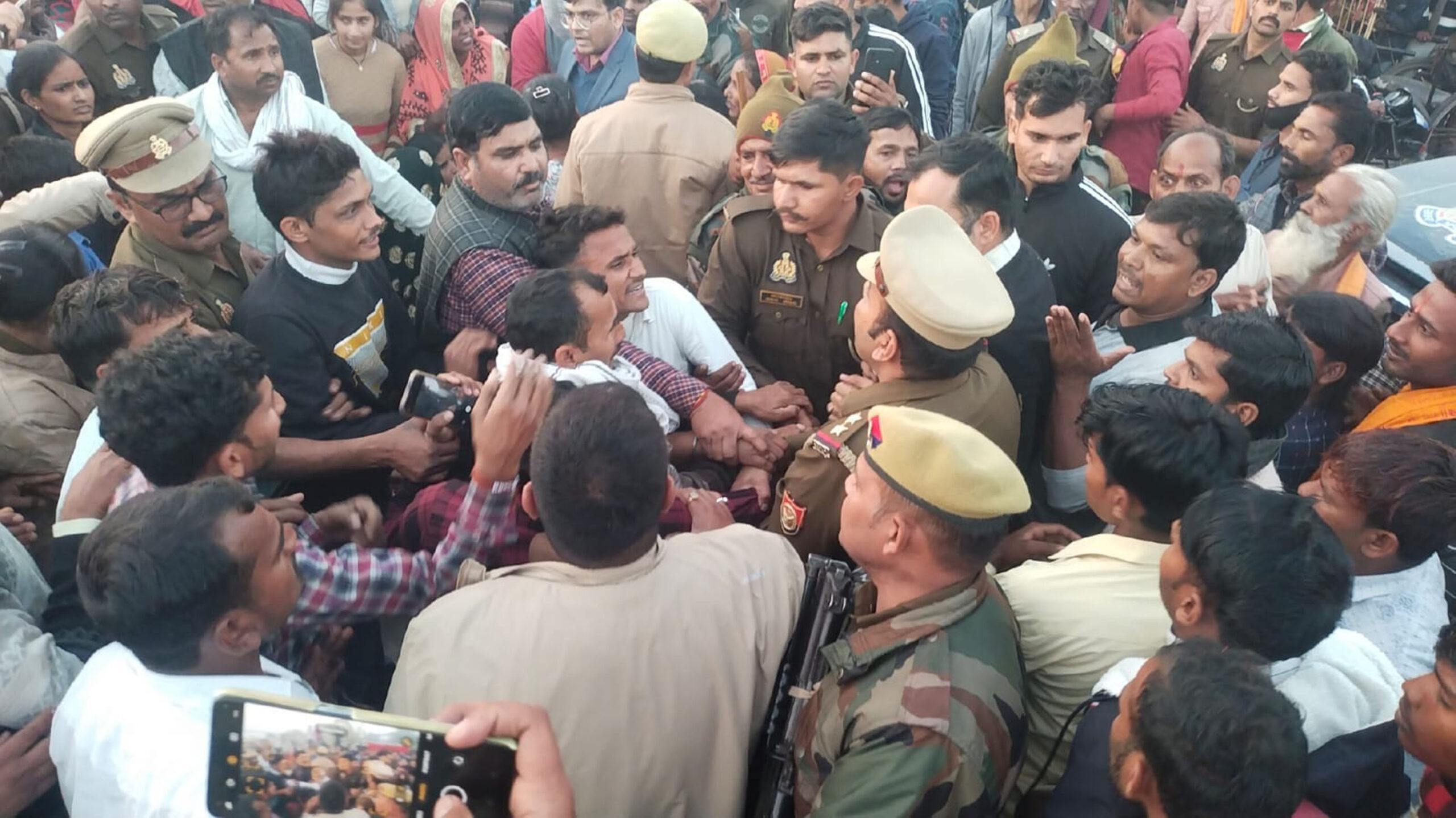 भीड़ ने सीओ व एसडीएम से खींचतान व अभद्रता, लगे पुलिस मुर्दाबाद के नारे