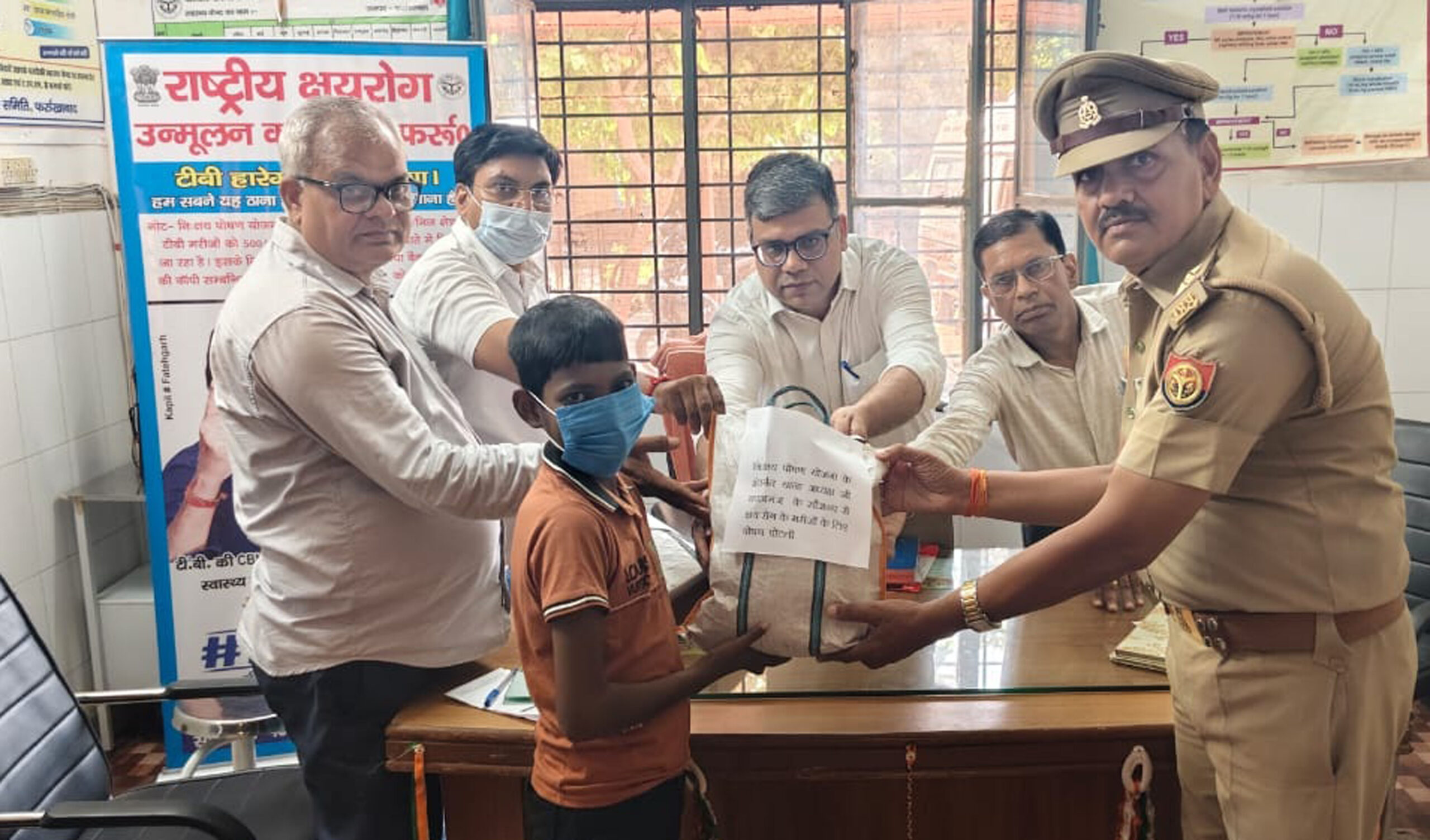 कस्बा नवाबगंज स्थित सामुदायिक स्वास्थ्य केंद्र पर सोमवार को नवरात्रि प्रारंभ होते ही थाना पुलिस के दरोगा कस्बा इंचार्ज गीतम सिंह ने मातहतों के साथ सामुदायिक स्वास्थ्य केंद्र पहुंचकर मरीजों को फलों का वितरण किया। स्वास्थ्य केंद्र में भर्ती मरीज आयुष कुमार ग्राम नगला शंभू पिलखाना, प्रांजलि कुमारी ग्राम नगला शंभू पिलखाना, हिना रानी बंजारा बस्ती नवाबगंज, प्रदीप वाल्मीकि नया गनीपुर नवाबगंज, सुनीता देवी नगला हीरा सिंह को थाना पुलिस ने फल वितरण किया। जिससे मरीजों के चेहरे खिले उठे। थाना पुलिस के द्वारा फल वितरण से सभी मरीज खुश दिखे। इस मौके पर सामुदायिक स्वास्थ्य केंद्र के चिकित्सा अधीक्षक डॉक्टर लोकेश शर्मा सहित कई डॉक्टर व थाना पुलिस के दरोगा कस्बा इंचार्ज गीतम सिंह, दरोगा गिरीश चंद्र, कांस्टेबिल अरविंद कुमार, किरण सिंह आदि लोग मौजूद रहे।