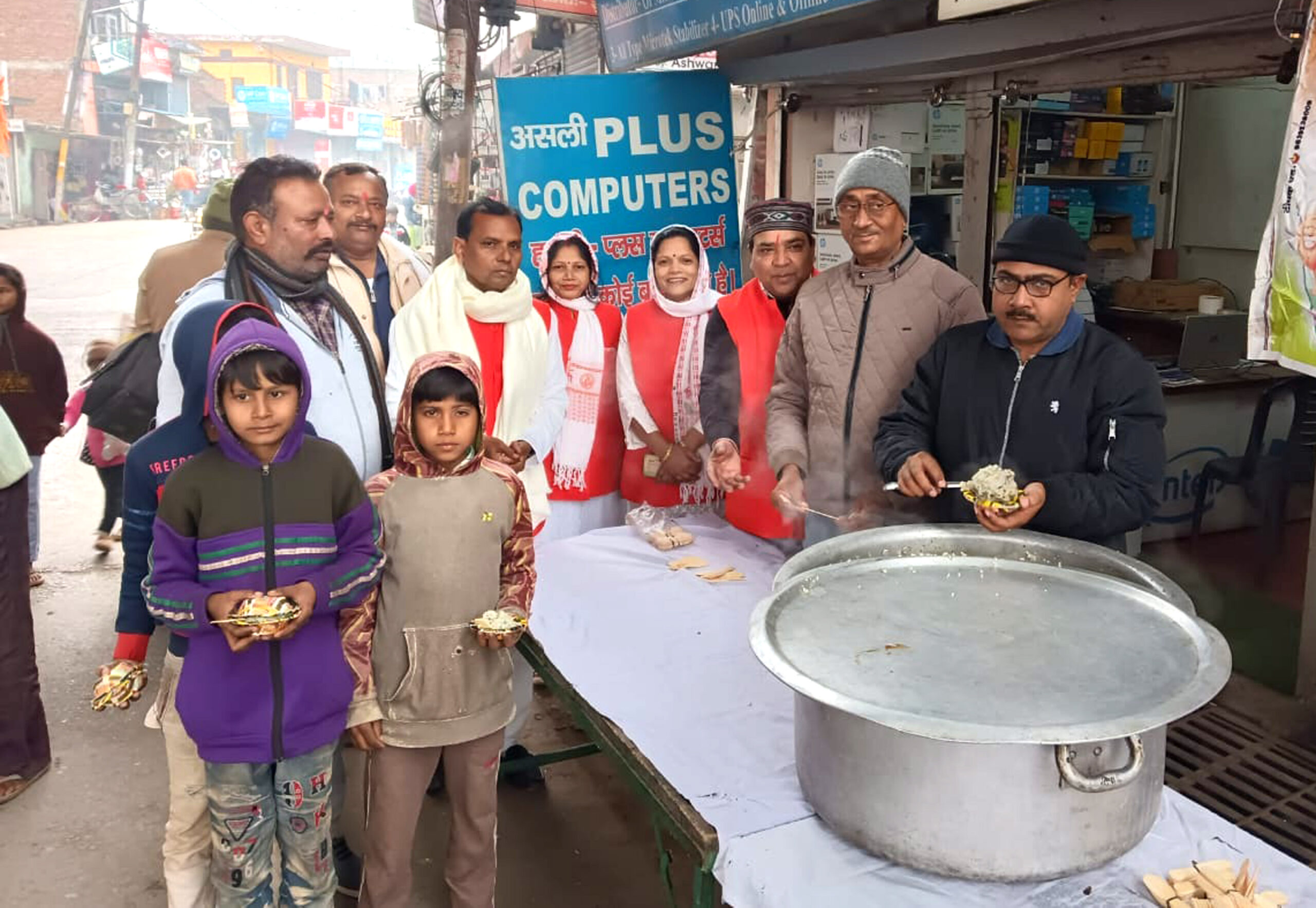 मकर संक्रांति पर भाविप व भारत स्वाभिमान द्वारा वितरित की गई खिचड़ी