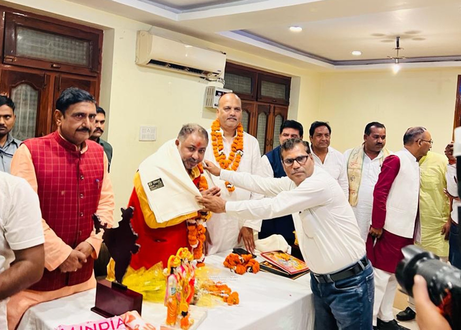 फर्रुखाबाद, समृद्धि न्यूज। विजय दशमी पर्व पर देर रात पहुंचे परिवहन मंत्री दयाशंकर सिंह का अखिल भारतीय क्षत्रिय महासभा द्वारा बढ़पुर स्थित राजपूताना होटल में फूल माला व शाल ओड़ाकर सम्मानित किया गया। समाज के लोगों ने पहुंचकर परिवहन मंत्री का स्वागत किया। उन्होंने पत्रकारों से रुबरु होते हुए कहा कि डबल डेकर बसों को अभियान चलाकर बंद कराया जायेगा। रोडवेज के आसपास जो भी डग्गामार वाहन खड़े होते है उनकों शीघ्र हटाया जाये। उन्होंने बताया कि इससे पूर्व एआरटीओ इटावा को लापरवाही के चलते निलंबित किया गया है। बसों की आमदनी बढ़ाने के लिए जिन रोड़ो पर बसों की आवश्यकता है वहां चलाया जायेगा। साथ ही डबल डेकर बसों व डग्गामार वाहनों को प्रतिबंधित किया जायेगा। जिम्मेदार लोग नहीं चेते तो उनके खिलाफ विभागीय कार्यवाही होगी। स्वागत समारोह के दौरान अखिल भारतीय क्षत्रिय महासभा के वरिष्ठ राष्ट्रीय उपाध्यक्ष वीरेन्द्र सिंह राठौर ने भगवान श्रीराम की मूर्ति देकर सम्मानित किया। वहीं सवायजपुर विधायक माधवेन्द्र सिंह रानू को शाल ओड़ाकर व भगवान श्रीराम का चित्र देकर सम्मानित किया। बड़ी संख्या में क्षत्रिय समाज के लोगों ने स्वागत किया। इस दौरान विधायक नागेन्द्र सिंह राठौर, जिलाध्यक्ष रुपेश गुप्ता, क्षत्रिय महासभा के जिलाध्यक्ष रामबहादुर सिंह, भुवनेश सिंह भदौरिया, बृजेश सिंह परिहार, वैभव सोमवंशी व क्षत्रिय सभा की वीरांगनायें मौजूद रही।