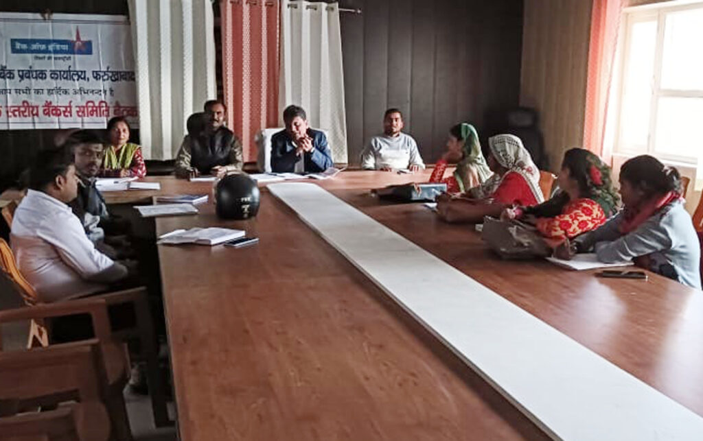 नवाबगंज विकास खंड कार्यालय पर जिला अधिकारी के निर्देशन में पहुंचे बैंक के आलाधिकारी एलडीएम राजेंद्र प्रसाद ने बीएलएम तथा समूह की महिलाओं के साथ बैठक की। बैठक के दौरान क्षेत्र की सभी ग्रामीण तथा बैंक ऑफ इंडिया के शाखा प्रबंधकों के साथ बैठक की। बैठक के दौरान उन्होंने समूह की महिलाओं व बीएमएम ममता को कई जानकारियां दीं। वहीं उन्होंने बैंक में होने वाले कार्यों में या सुविधाओं के बारे में सभी से जानकारी ली और सभी शाखा प्रबंधकों को बताया कि वह किसी भी समूह की महिला तथा बैंक के कर्मचारी किसी भी ब्लॉक के कर्मचारी या आम जनमानस को परेशानी ना होने दें और समय-समय पर उनके कार्यों को निपटाएं। जिससे कि कोई भी बैंक शाखाओं के ऊपर उंगली ना उठा सके। ऐसी कई अहम जानकारियां दीं। इस मौके पर एलडीएम राजेंद्र प्रसाद तिवारी, प्रभारी विकास खंड अधिकारी, एडीओ आईएसबी सुखदेव सिंह, बीएमएम ममता तथा समूह की महिलाएं व विकास खंड क्षेत्र के सभी बैंकों के शाखा प्रबंधक मौजूद रहे।