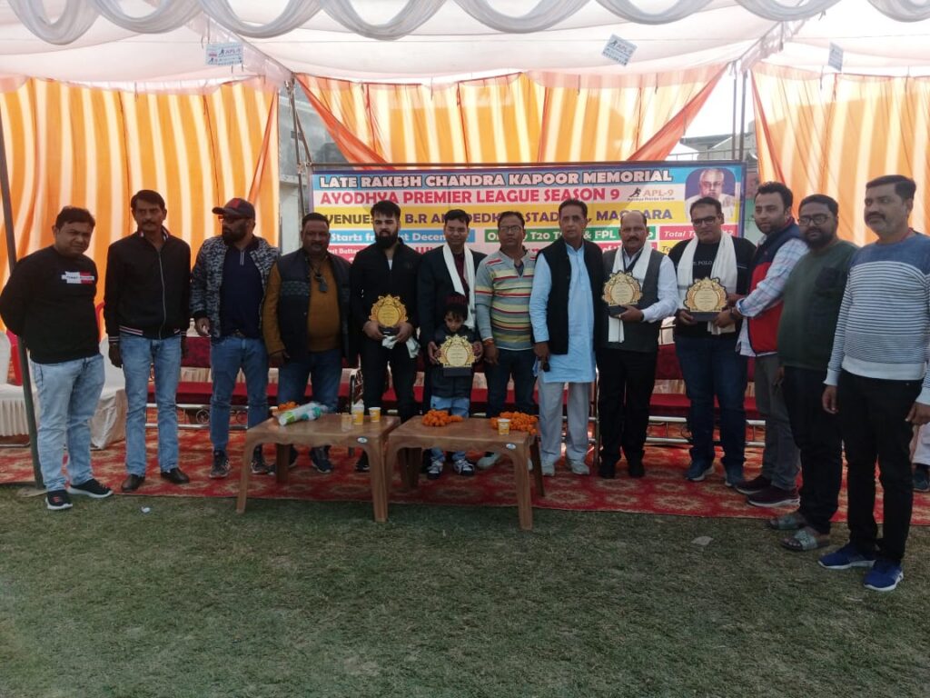 समृद्धि न्यूज़ अयोध्या। डॉ भीमराव अम्बेडकर स्पोर्टस स्टेडियम मकबरा में चल रहे स्व. राकेश चन्द्र कपूर पल्लू भइया मेेमोरियल अयोध्या प्रीमियर लीग-9 में गुरुवार को दो सेमीफाइनल मैच खेले गये। गुरुवार के मैच में मुख्य अतिथि के रूप मे एम.जी.एस. स्कूल के प्रबन्धक व समाजसेवी बलवन्त सिहं का स्वागत आयोजन सचिव सुप्रीत कपूर व निदेशक सै. सुबहानी ने अंगवस्त्र व स्मृतिचिन्ह भेटकर किया।वही विशिष्ट अतिथि व्यापारी हेमन्त कालरा व दानिश अंसारी का स्वागत आयोजन उपाघ्यक्ष दीपेन्द्र श्रीवास्तव और देवेन्द्र मिश्रा दीपू ने अंगवस्त्र व स्मृतिचिन्ह भेटकर किया।दिन का पहला मैच टूर्नामेन्ट का पहला सेमीफाइनल मैच अयोध्या स्पाटन व लाइफ केयर लखनऊ के बीच खेला गया।अयेाध्या स्पाटन की टीम ने टॉस हारकर पहले बल्लेबाजी करते हुए निर्धारित 20 ओवर में 09 विकेट खोकर 162 रन बनाये।अयोध्या स्पाटन के बल्लेबाज आदित्य ने 05 चौके,02 छक्के की मदद से 40 रन, शारदुल ने 04 चौके और 01 छक्के की मदद से 33 रन,संदीप ने 01 चौके,03 छक्के की मदद से 29 रन बनाये।लाइफ केयर लखनऊ के गेंदबाज अतुल व सत्यम ने 02-02 विकेट और रोहित,यश,अभिषेक ने 01-01 विकेट हासिल किये।लक्ष्य का पीछा करने उतरी लाइफ केयर लखनऊ की टीम ने 15वें ओवर में 06 विकेट शेष रहते लक्ष्य हासिल कर लिया।लाइफ केयर लखनऊ के बल्लेबाज प्रियांशु ने 08 चौके और 03 छक्के की मदद से मात्र 31 गेंद में 67 रन बना डाले और एकलव्य ने 03 चौके और 04 छक्के की मदद से 42 रन व यश ने 05 चौके की मदद से 28 रन बनाये अयोध्या स्पाटन के गेंदबाज संदीप, अनुराग,सत्यार्थ,मनीष ने 01-01 विकेट हासिल किये।इस मैच में मैन ऑफ द मैच का पुरस्कार प्रियांशु को दिया गया।दिन का दूसरा मैच व टूर्नामेंट का दूसरा सेमीफाइनल केटी नाइट राइडर्स और अतुल इलेवन लखनऊ के बीच खेला गया।टॉस जीतकर पहले बल्लेबाजी करते हुए,केटी नाइट राइडर्स की टीम ने निर्धारित 18 ओवर मे 06 विकेट खोकर 123 रन बनाये।केटी नाइट राइडर्स के बल्लेबाज शिवेन्द्र ने 44 रन,सकलैन ने 19 रन और शेरा ने 17 रन बनाये वहीं अतुल इलेवन के गेंदबाज विनीत ने 02 विकेट,मिलन व यश ने 01-01 विकेट हासिल किये।लक्ष्य का पीछा करने उतरी अतुल इलेवन लखनऊ की टीम ने रोमांचक मुकाबले को आखरी गेंद पर जीत लिया।अतुल इलेवन के बल्लेबाज आयुष ने 39,विनीत ने 37 व शैलेष ने 24 रन बनाये वहीं नाइट राइडर्स के गेंदबाज अभिषेक ने 02 व शेरा ने 01 विकेट हासिल किया।इस मैच में मैन ऑफ द मैच का पुरस्कार विनीत को दिया गया।मीडिया प्रभारी मनोज तिवारी ने बताया इस मौके पर सै. आसिफ,गगन जायसवाल,राहुल केवलरमानी,उमाशंकर जायसवाल,विवेक साहू,सुमित राजपाल,अंकुश गुप्ता,रहमानी खान,अखिलेश पाठक,अमित सक्सेना,पृथ्वी यादव,स्वप्निल रस्तोगी,मो. बिलाल,सुमित सिंह, मो. हमजा व राजू जायसवाल आदि लोग मौजूद रहे।