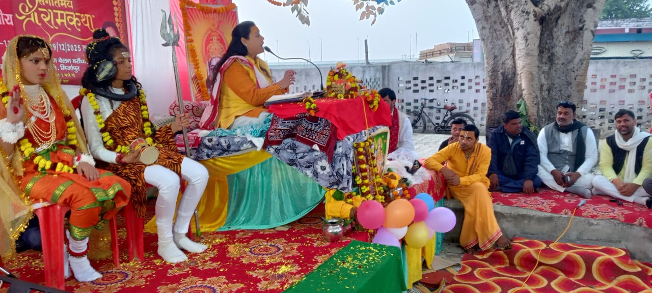 हलिया (मिर्ज़ापुर):बरौंधा बाजार में आयोजित राम कथा के दूसरे दिन कथा वाचिका कुमकुम पाण्डेय शिव पार्वती के विवाह की कथा सुनाकर श्रोताओं को भाव-विभोर किया।माता पार्वती के गले में माला पड़ते ही हर हर महादेव के जयकारे से पूरा पंडाल गूंज उठा। इस दौरान पंडाल में बैठी सैकड़ों महिलाएं खुशी से नाचने लगी। आज के कथा की यजमान बरौंधा की प्रधान गुलाब कली प्रधान पति गोपाल कोल ने विधिवत पूजन करके आरती उतारी। शिव पार्वती के विवाह की कथा सुनाते हुए मानस कोकिला कुमकुम पाण्डेय ने कहा कि समूचे ब्रह्मांड भोलेनाथ का अनोखा चमत्कार है। इस दौरान अर्श हास्पीटल के महाप्रबंधक डा• महा नारायण भारती यू ओ कान्वेंट स्कूल के प्रबंधक ओमकार पाण्डेय विहिप हलिया प्रखंड अध्यक्ष राजेश कुमार मिश्र निरंजन पाण्डेय चंद्र भूषण उर्फ कप्तान पाण्डेय ओम प्रकाश मिश्र लक्ष्मण सिंह मौजूद रहे।