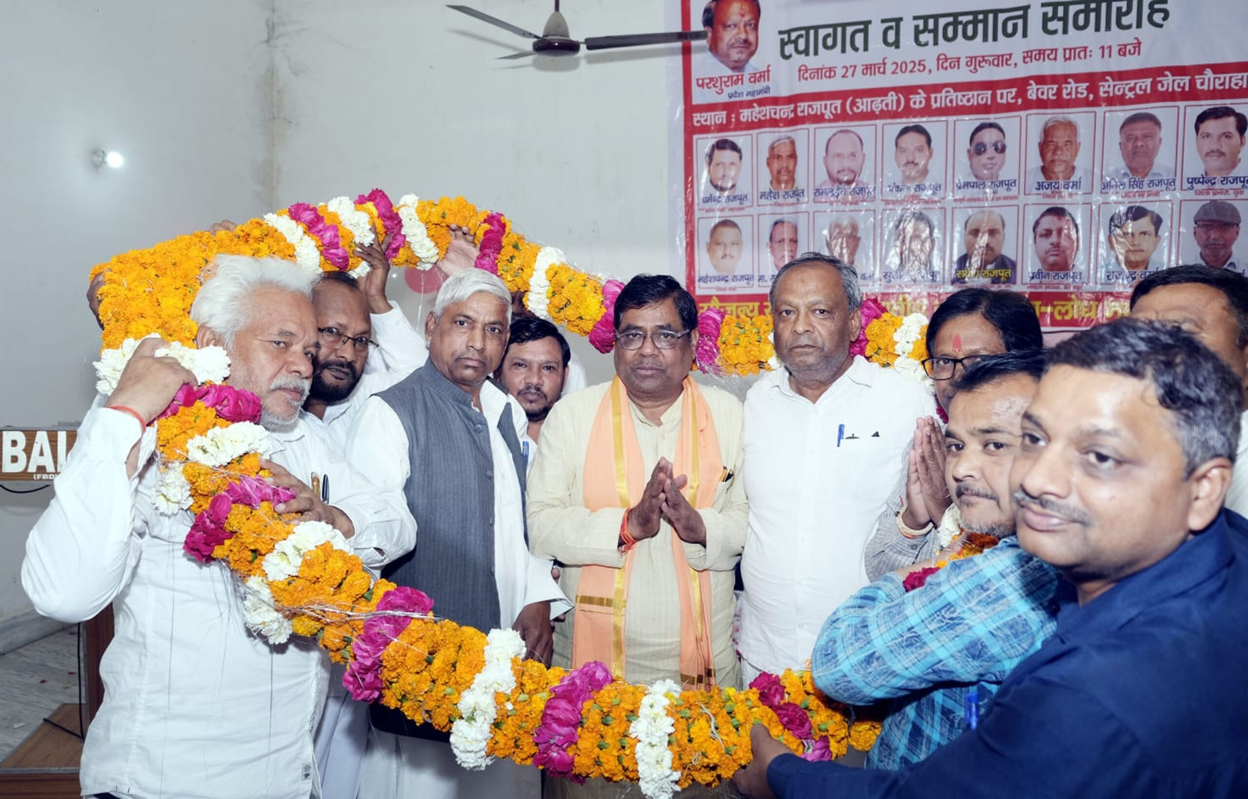 फर्रुखाबाद, समृद्धि न्यूज। अखिल भारतीय लोधी लोधा लोध महासभा द्वारा भाजपा के नवनियुक्त जिलाध्यक्ष फतेहचन्द्र वर्मा का महेश राजपूत के प्रतिष्ठान पर स्वागत किया गया। महासभा के प्रदेश मंत्री डा0 धर्मेन्द्र राजपूत द्वारा प्रतीक चिन्ह व शॉल ओड़ाकर सम्मानित किया गया। महासभा के पदाधिकारियों ने 51 किलों की माला पहनाकर फतेहचन्द्र वर्मा का स्वागत किया। दिलीप राजपूत ने चांदी का मुकुट पहनाकर जोरदार स्वागत किया। फतेहचन्द्र वर्मा ने कहा कि पार्टी के अलावा सभी समाजों द्वारा सम्मान किया जा रहा है। ऐसे में लोधी महासभा द्वारा जो मुझे सम्मान दिया गया इसका मैं सभी का आभार व्यक्त करता हूं और उन्होंने कहा कि सामज के लिए हमेशा मैं तन-मन-धन से सहयोग करने के लिए तैयार हूं। इस मौके पर महासभा के जिलाध्यक्ष महेश चन्द्र राजपूत, परशुराम वर्मा, डा0 धर्मेन्द्र राजपूत, महेश राजपूत, रामलड़ैते राजपूत, अनिल सिंह राजपूत, रामाधार, अमर सिंह वर्मा, अजय राजपूत, प्रेमपाल, मगन लाल वर्मा, आजाद सिंह वर्मा, सर्वेश राजपूत मौजूद रहे। अध्यक्षता रामगोपाल वर्मा ने की। संचालन परशुराम वर्मा ने किया।