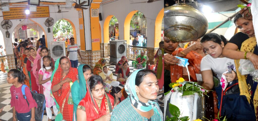 फर्रुखाबाद, समृद्धि न्यूज। सावन के पांचवे सोमवार पर नगर के शिवालयों में भक्तों ने पहुंचकर विधि विधान से भगवान भोलेनाथ की पूजा अर्चना की और उनको वेलपत्र, धतूरा, भांग आदि अर्पण किये। वहीं कई भक्तों ने गंगा स्नान कर वहां से लाये गये जल से भगवान भोलेनाथ का जलाभिषेक किया। मंदिरों में पूरे दिन बम-बम भोले के जयकारे गुंजायमान होते रहे। आज सावन का पांचवां सोमवार होने के चलते शिवालयों को आकर्षक ढंग से सजाया गया था। सुबह भक्तों ने पहुंचकर भगवान भोलेनाथ का दुग्धाभिषेक किया और उनको वेेलपत्र, धतूरा, पुष्प, भांग आदि अर्पण किये। नगर के ऐतिहासिक मंदिर पांडेश्वरनाथ में भक्तों का भारी जनसैलाब उमड़ा। जिससे भक्तों को दर्शन करने में अपनी-अपनी बारी का इंतजार करना पड़ा। यहां पर तैनात पुलिसकर्मियों ने बेरीकेडिग कर भीड़ को नियंत्रित किया और महिला और पुरुषों की अलग-अलग लाइनें लगवाकर दर्शन करवाये। इसके अलावा नगर के मठिया देवी, कोतवालेश्वर, बढ़पुर स्थित शंकर जी के मंदिर, भोलेपुर स्थित भगवान शिव के मंदिर समेत नगर के दर्जनों शिव मंदिरों पर भारी भीड़ देखी गयी। वहीं महिलाओं ने व्रत रखकर भगवान शिव की आराधना की। शाम के समय मंदिरों में भगवान शिव की वेलपत्र, भांग आदि से मनमोहक झाकियां सजायी गयीं। जिससे भगवान भोलेनाथ की नयनाभिराम झांकी देखते ही बनती थी। शाम के समय भी शिव मंदिरों में काफी भीड़भाड़ देखी गयी। भगवान के दर्शन करने के लिए भक्तों को भारी जद्दोजहद करनी पड़ी। भीड़ को नियंत्रित करने के लिए यहां पर तैनात महिला, पुरुष पुलिस को काफी दिक्कतों का सामना करना पड़ा।