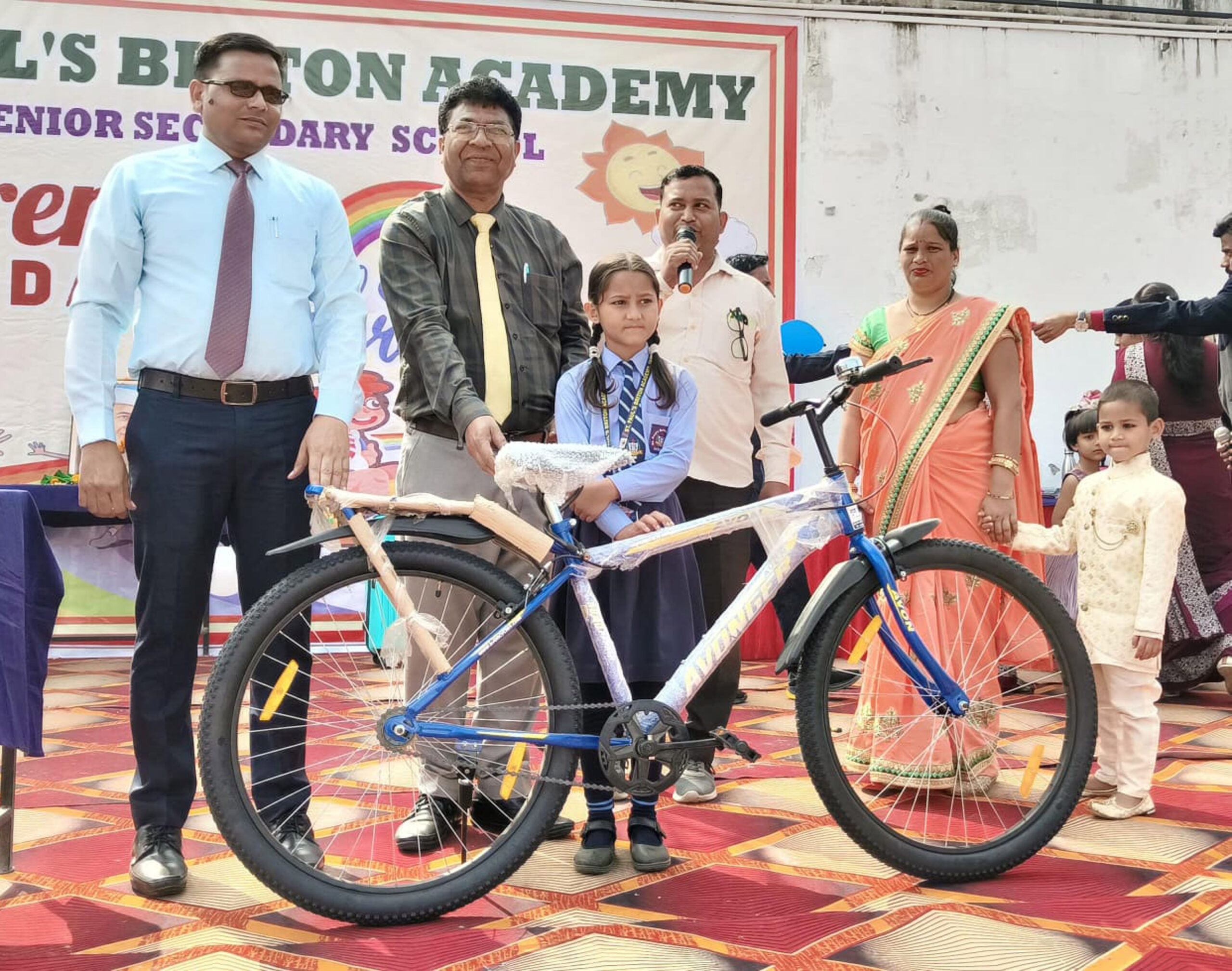 बाल दिवस मेले में हुआ लकी ड्रॉ, छात्रा को दी गई साइकिल