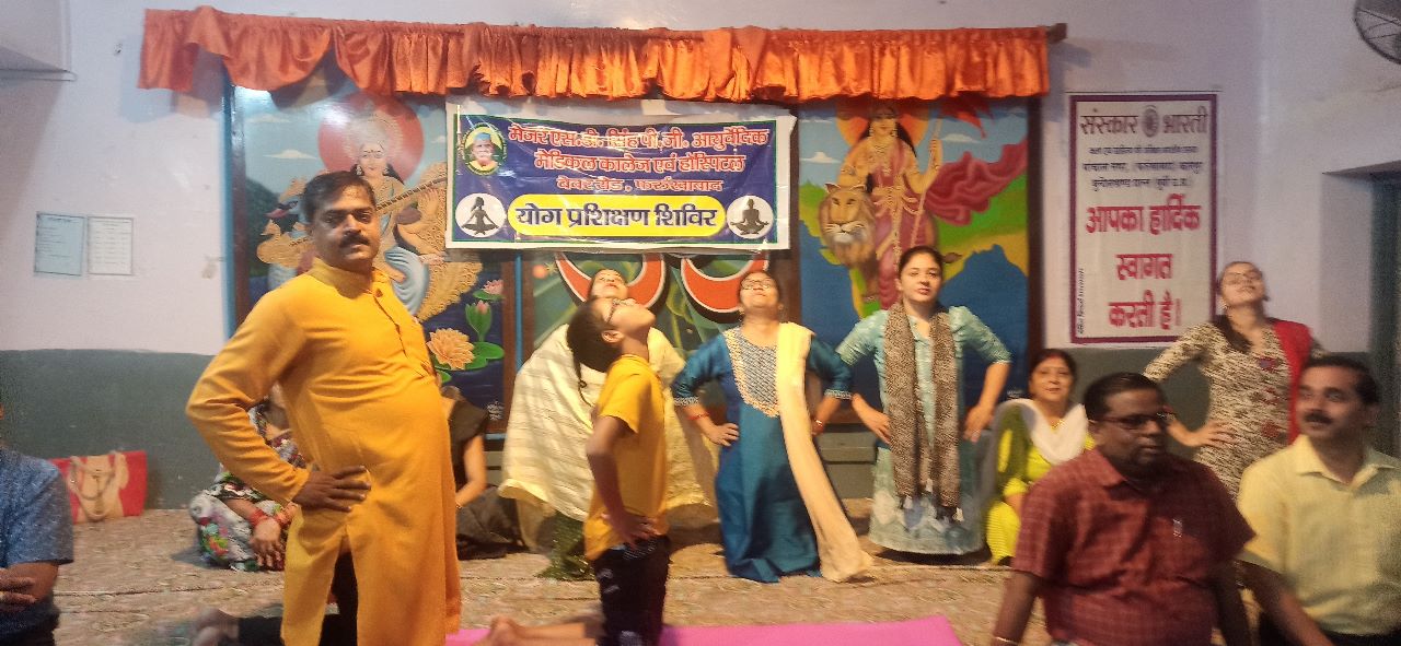 फर्रुखाबाद, समृद्धि न्यूज। विश्व योग सप्ताह के अन्तर्गत दूसरे दिन मेजर एसडी सिंह पीजी आयुर्वेदिक मेडिकल कॉलेज के आयुर्वेदाचार्यों ने प्राचार्य डॉ0 सुनील कुमार गुप्ता के नेतृत्व में नगर के सेनापति स्ट्रीट स्थित सरस्वती शिशु मंदिर में शिविर लगाकर बच्चों एवं शिक्षकों को योग करने और निरोग रहने का संदेश दिया।