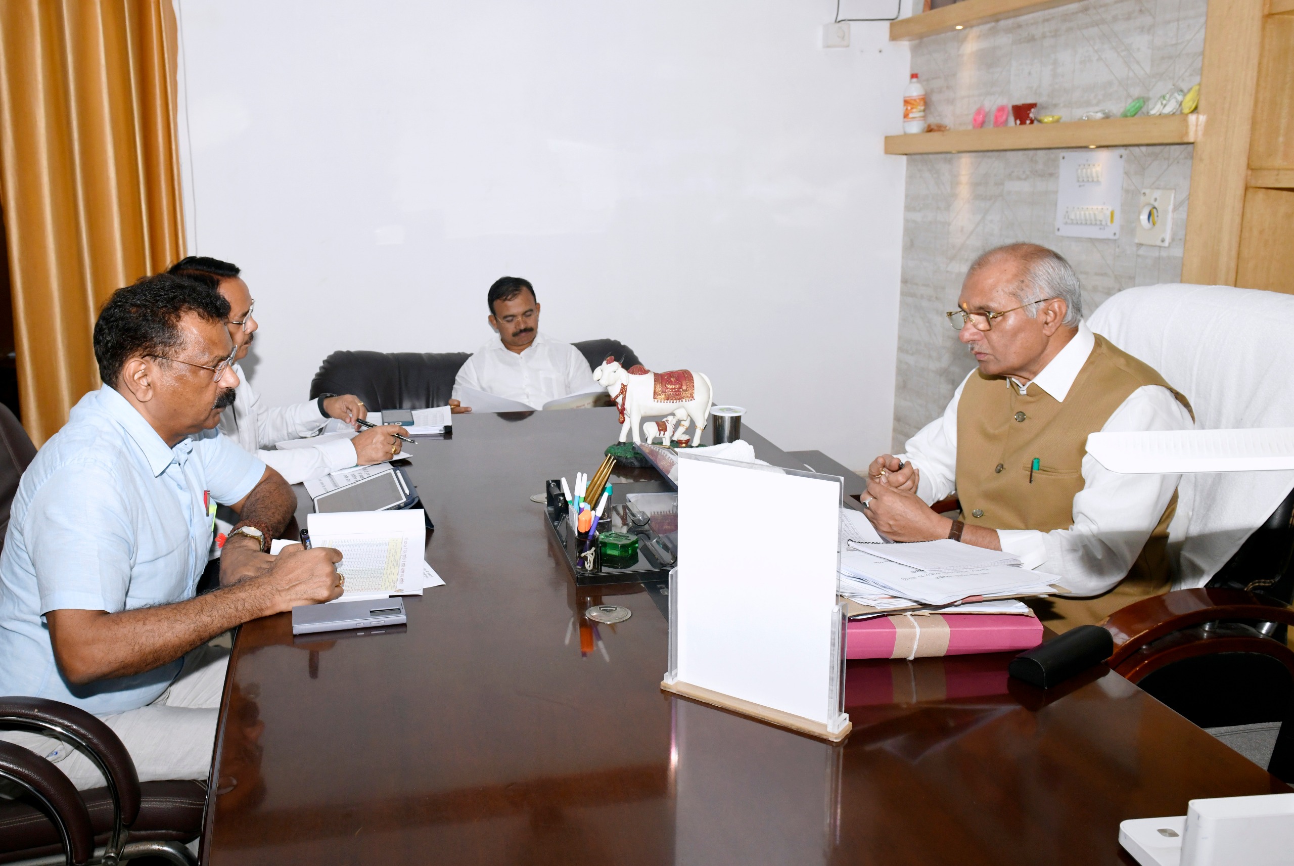 दुग्ध विकास मंत्री श्री सिंह ने आज यहां विधान भवन स्थित अपने कार्यालय कक्ष में विभागीय कार्यों के गत् एक सप्ताह में क्रियान्वयन की समीक्षा की।श्री सिंह ने कहा कि दुग्ध विकास विभाग का लक्ष्य प्रदेश की जनता को शुद्ध दूध उपलब्ध कराना है और दुग्ध उत्पादन से जुड़े किसानों, पशुपालकों को उनके दुग्ध मूल्य का नियमित रूप से भुगतान कराना प्राथमिकता है।श्री सिंह ने विभागीय अधिकारियों को बंद पड़ी दुग्ध समितियों को पुनः चालू किये जाने और वर्तमान में संचालित समितियां किसी भी कारण से बंद न किये जाने पर विशेष बल दिया।श्री सिंह ने कहा कि नन्द बाबा एवं गोकुल पुरस्कार के वित्तीय वर्ष 2023-24 के लाभार्थियों की चयन सूची तैयार कर उन्हें पुरस्कृत करने की कार्यवाही शीघ्र पूरी की जाए।दुग्ध विकास मंत्री ने कानपुर,गोरखपुर और कन्नौज डेयरी प्लांट का संचालन एनडीडीबी को दिये जाने के संबंध में हुई प्रगति की भी समीक्षा की और कहा कि जो भी औपचारिकताएं शेष या अपूर्ण हैं,उन्हें शीघ्र पूरा किया जाए। प्रदेश में दुग्ध उत्पादन बढ़ाने के लिए नई समितियों के गठन एवं पुनर्गठन का लक्ष्य निर्धारण किया गया है,उसे सुदृढ़ कार्ययोजना बनाकर शीघ्र पूरा किया जाए।श्री सिंह ने कहा कि पराग के उत्पादों की मार्केटिंग कर विशेष ध्यान दिया जाए।  सिंह ने निर्देश दिये कि किसानों एवं पशुपालकों को उनके दुग्ध मूल्य का भुगतान निर्धारित समयावधि में किया जाए और विलम्ब न होने पाये। वर्तमान भुगतान के साथ ही बकाया धनराशि का भी भुगतान कर भुगतान प्रक्रिया को नियमित किया जाए।अवगत कराया गया कि वर्तमान में 18108 निबंधित समितियां हैं,जिसके सापेक्ष 7094 कार्यरत समितियां हैं। प्रत्येक दुग्ध संघ द्वारा दो दुग्ध समितियों का भ्रमण एवं अनुश्रवण किया जा रहा है।गत एक माह में 775 कार्यरत एवं 459 अकार्यरत दुग्ध समितियां कुल 1234 दुग्ध समितियों में भ्रमण किया गया। 169 अकार्यरत समितियों को कार्यरत किया गया।बैठक में दुग्ध विकास विभाग के प्रमुख सचिव के. रवीन्द्र नायक ने मंत्री श्री सिंह को आश्वस्त करते हुए कहा कि उनसे प्राप्त दिशा निर्देशों का अनुपालन सुनिश्चित किया जायेगा।उन्होंने अधिकारियों को निर्देशित किया कि जिन दुग्ध संघों द्वारा अभी भी दुग्ध मूल्य भुगतान में उदासीनता बरती जा रही है उनके द्वारा भुगतान कार्य गंभीरता से किया जाए।उन्होंने अधिकारियों को समितियों की संख्या बढ़ाये जाने के संबंध में तत्परता से कार्य किये जाने के निर्देश दिये।बैठक में गठन/पुनर्गठन के सापेक्ष संचालित दुग्ध समितियां,दुग्ध समितियों द्वारा भ्रमण,डेयरी प्लांट की उपयोगिता क्षमता,दुग्ध उपार्जन, तरल दुग्ध बिक्री,बकाया दुग्ध मूल्य भुगतान आदि की गहन समीक्षा की गयी।बैठक में 