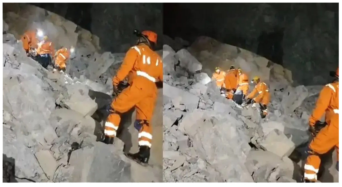 #WATCH | Sonbhadra, UP | Around 15 people are feared trapped after a stone mine collapsed yesterday in Sonbhadra. One body has been recovered. Rescue operations are underway. NDRF and SDRF teams are at the spot