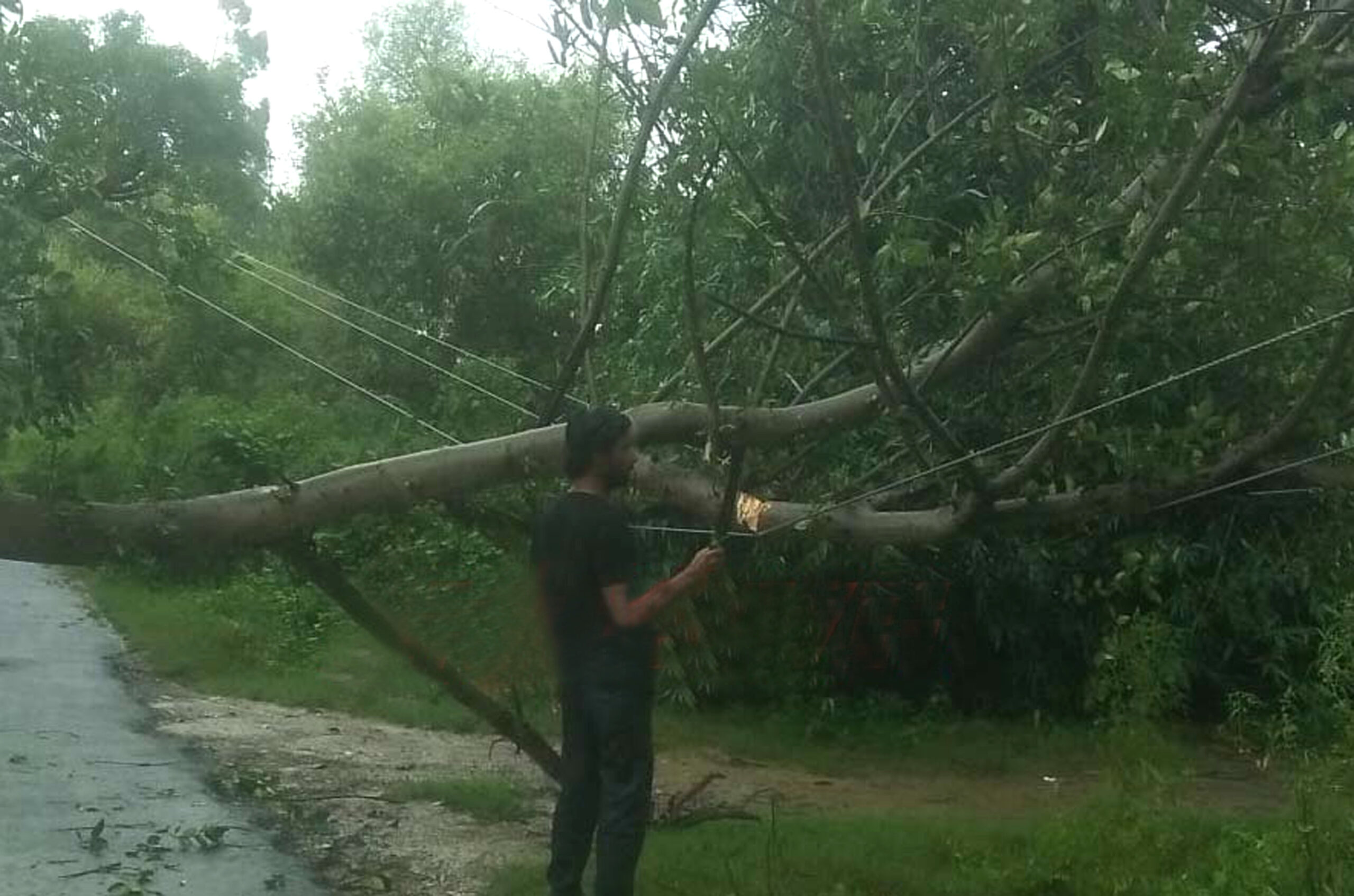 तूफानी वारिश से कई पेड़ उखकर विद्युत लाइन पर गिरे