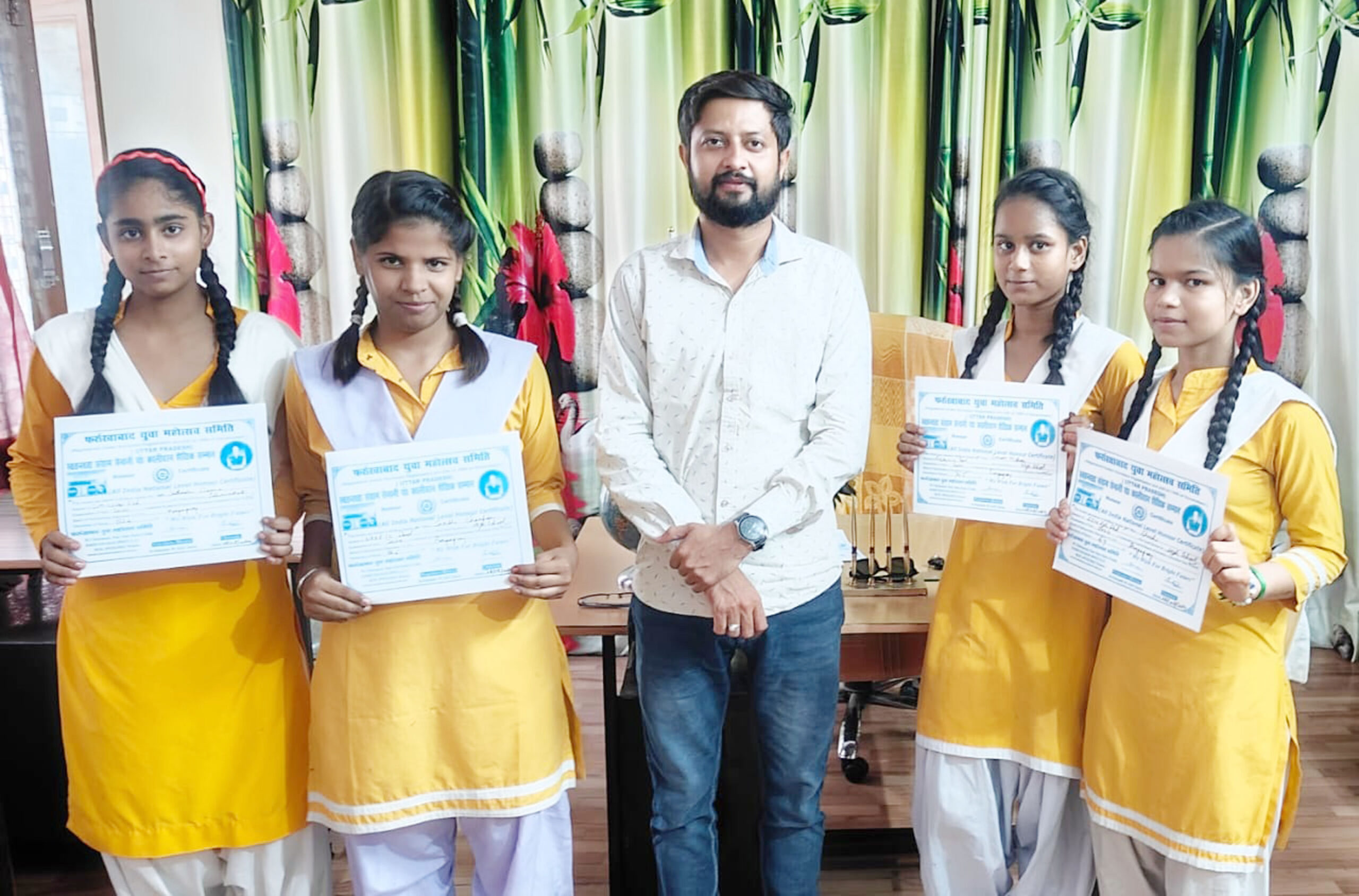फर्रुखाबाद, समृद्धि न्यूज। फर्रुखाबाद युवा महोत्सव समिति द्वारा विगत दिनों हुए मेधावी छात्रों का सम्मान समारोह आयोजित कार्यक्रम में कुछ छूटे हुए मेधावी बच्चों को समिति के सदस्य हर्ष दुबे ने प्रशस्ति पत्र वितरित कर सम्मानित किया। समिति के अध्यक्ष डॉ0 संदीप शर्मा की मौजूदगी में समिति प्रतिनिधि एवं कार्यक्रम प्रभारी मिस्टर फर्रुखाबाद हर्ष दुबे द्वारा वितरण कार्यक्रम सम्पन्न हुआ। छूटे हुए स्कूल एवं कॉलेज के समस्त स्टाफ गण द्वारा समिति के द्वारा मेधावियों को सम्मानित कर प्रशंसा की गई। इस मौके पर अलसीफा, जैनब, अफरीन, प्रीति, मान्या, शालिनी आदि उपस्थित रहे।