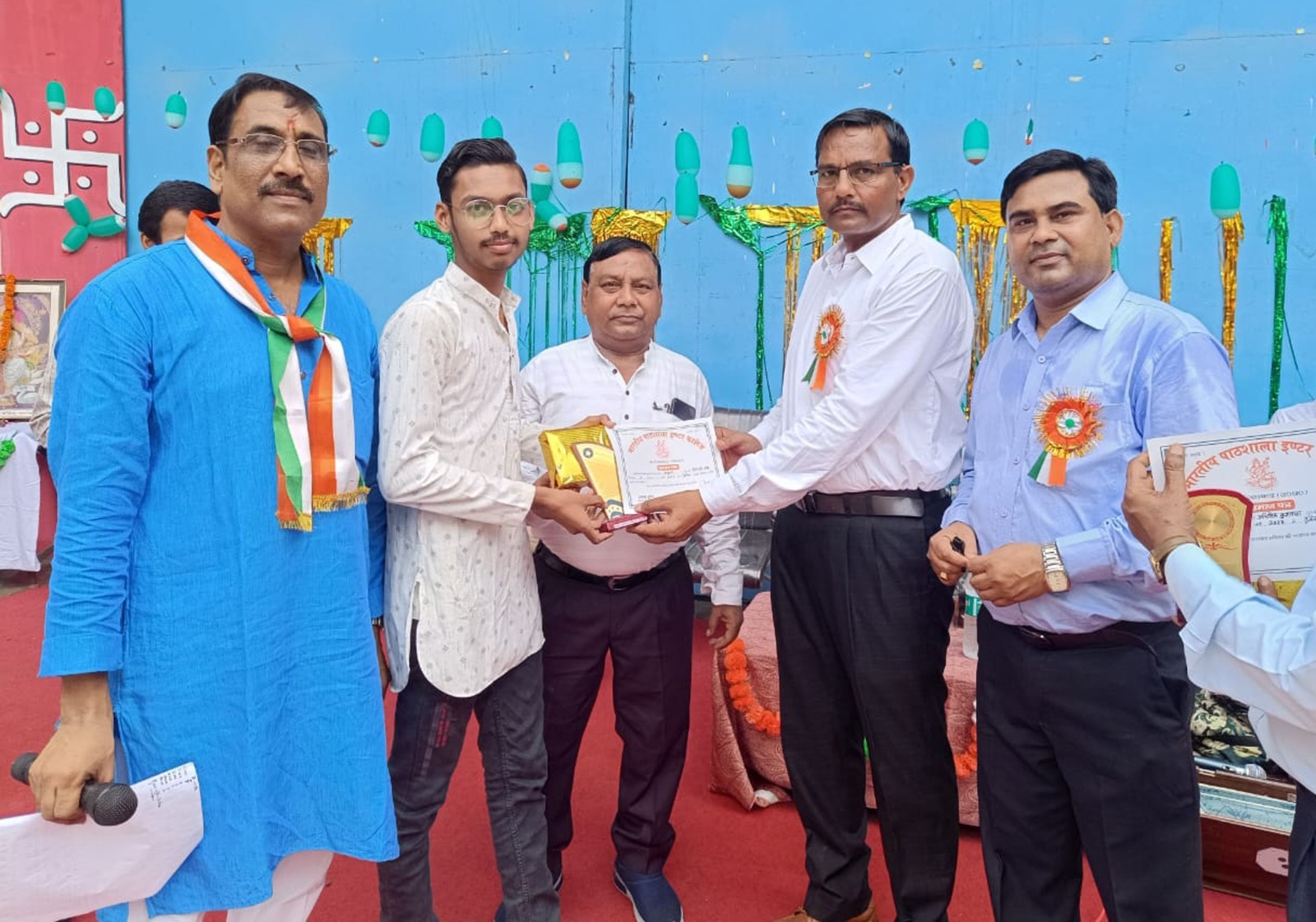भारतीय पाठशाला इंटर कालेज के प्रधानाचार्य दिनेश कुमार वर्मा ने स्वतंत्रता दिवस पर देश के नाम सम्बोधन दिया और छात्रों को उनके कर्तव्यों के प्रति बोध कराया साथ ही पंच प्रण की शपथ दिलायी। उन्होंने कहा कि देश के बारे में युवा पीढ़ी जाने। हमारे वीर क्रांतिकारियों ने अपने प्राण की बाजी लगाकर देश को आजाद कराया। न जाने कितने सैनिक शहीद हुए उनके बारे में युवा पीढ़ी जानकारी रखे। साथ ही उन्होंने स्काउट गाइड की परीक्षा करवायी। इंटर की परीक्षा में ९०.८० प्रतिशत अंक लाने वाले नकुल वर्मा व ८९.४० प्रतिशत अंक लाने वाले अनुराग एवं ८७.२० प्रतिशत अंक लाने वाले अभिषेक कुशवाहा को प्रमाण पत्र व शील्ड देकर सम्मानित किया गया। हाईस्कूल में विद्यालय में प्रथम आने वाले सौरव वर्मा, सैफ व कृष्णा वर्मा, मिजी अब्दुल अहमद वेग को भी प्रमाण पत्र व शील्ड देकर सम्मानित किया गया। स्काउट प्रतियोगिता में प्रथम आने वाले अजय सक्सेना, अंश गुप्ता, विकास, राज वर्मा, कृष्णाय, गोपी, शिवमोहन शुक्ला, सौरव वर्मा, नीशू दुबे, ईशू मिश्रा प्रथम रहे। श्याम यादव, श्रम सिंह, खुर्शीद, दीपक, नितेश श्रीवास्तव, रामजी, नमन भारद्वाज, मोहित हसन, निखिल, ऋषि द्वितीय रहे। आशुतोष श्रीवास्तव, अमान अली, मोहम्मद जामाद, आर्यन मौर्य, कुशाग्र शर्मा, अभय मिश्रा आदि छात्र तृतीय रहे।