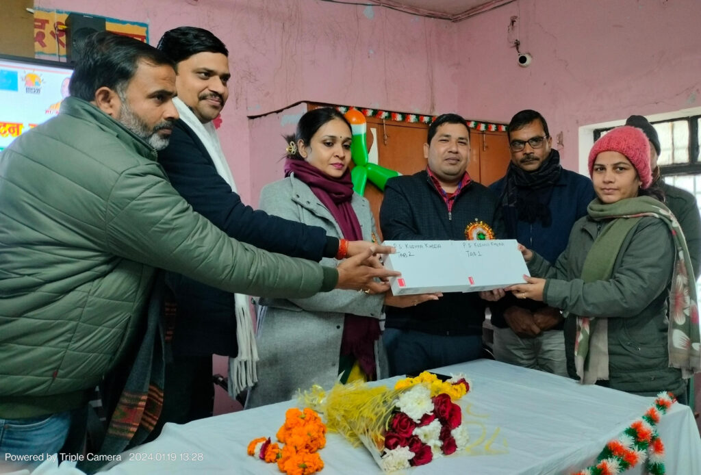 खण्ड शिक्षाधिकारी सतीश कुमार वर्मा ने सभी शिक्षकों को टेबलेट की महत्वता के बारे में विस्तार से जानकारी दी। 172 प्राथमिक विद्यालय व कंपोजिट विद्यालय को कल से टेबलेट वितरण किए जाएंगे। खंड शिक्षाधिकारी सतीश वर्मा ने बताया कि 25 विद्यालय के शिक्षक को टेबलेट वितरण किए गए। इस मौके पर अपना दल एस के जिलाध्यक्ष राहुल गंगवार, एआरपी मनोज गंगवार, श्रीनिवास, अजीत कुमार, मुकेश कुमार, अनुराग दुबे सहित तमाम शिक्षक मौजूद रहे।